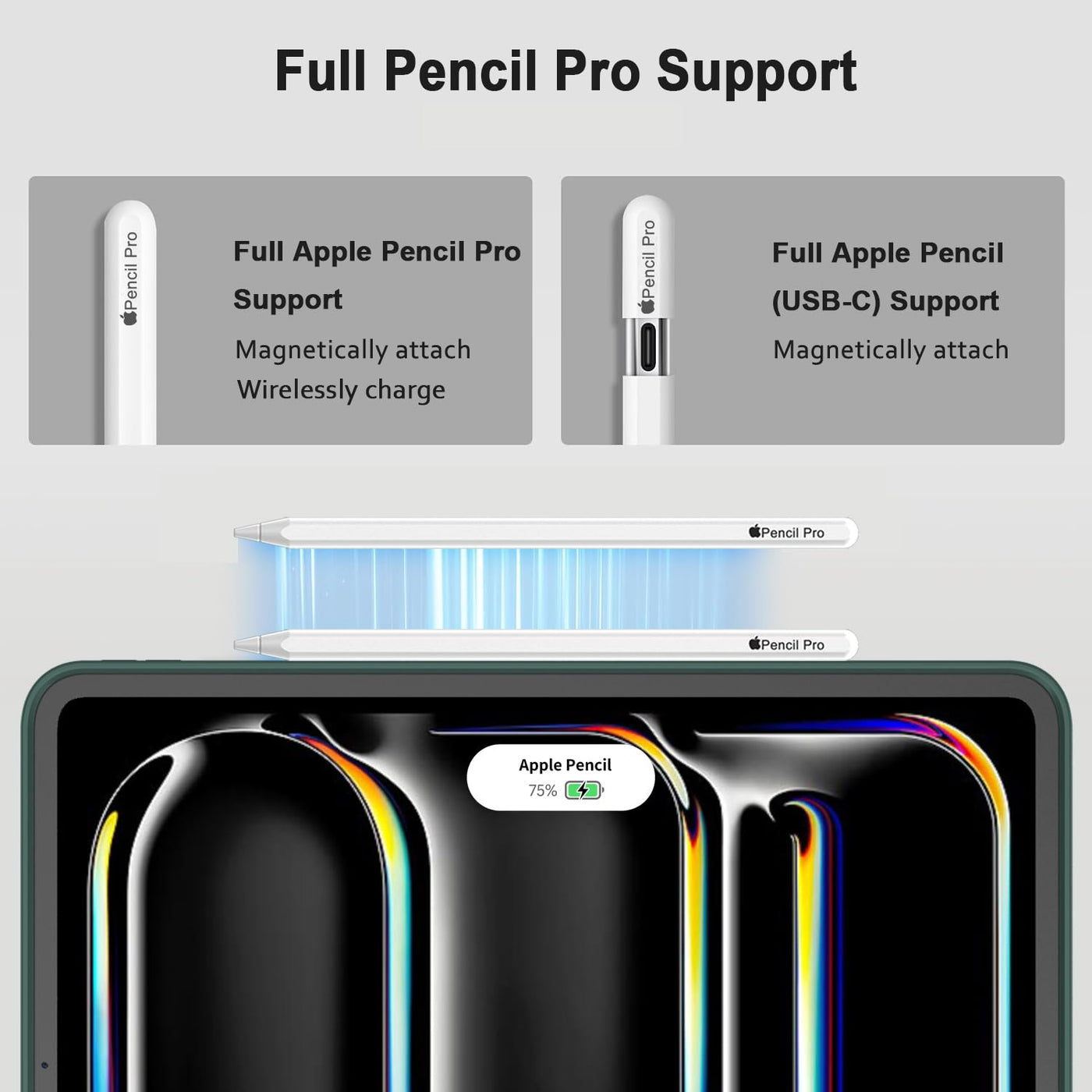 Imieet Ipad Pro 13 Inch Case M4 (2024) With Pencil Holder, [Support Pencil Pro And Pencil (Usb C)],Trifold Stand Smart Case With Soft Tpu Back, Auto Wake/Sleep (Midnight Green)