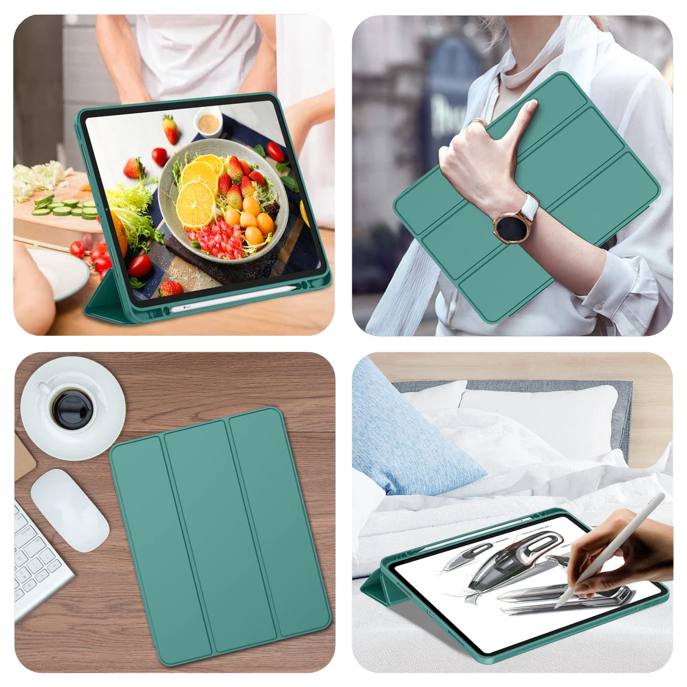 Imieet New Ipad Pro 12.9 Case 2022(6Th Gen)/2021(5Th Gen) With Pencil Holder [Support Ipad 2Nd Pencil Charging/Pair],Trifold Stand Smart Case With Soft Tpu Back,Auto Wake/Sleep(Forest Green)