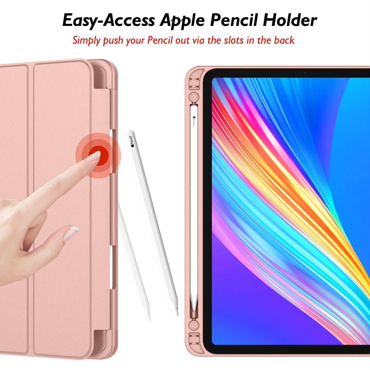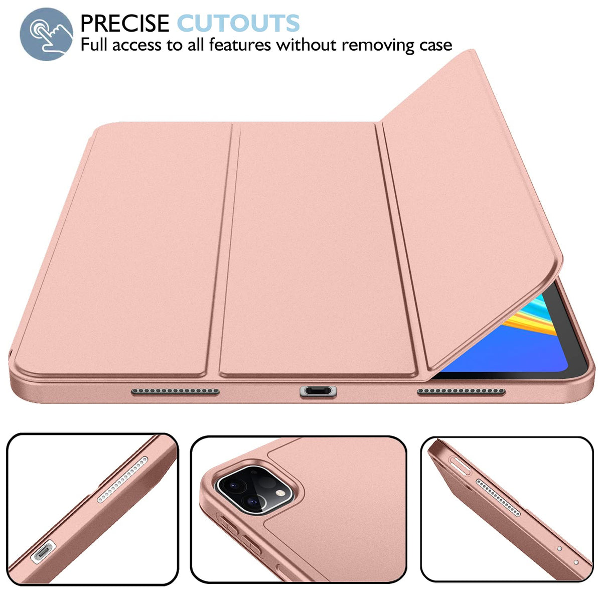 Imieet New Ipad Pro 12.9 Case 2022(6Th Gen)/2021(5Th Gen) With Pencil Holder [Support Ipad 2Nd Pencil Charging/Pair],Trifold Stand Smart Case With Soft Tpu Back,Auto Wake/Sleep(Rose Gold)