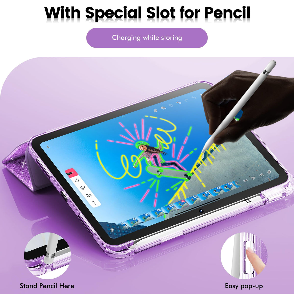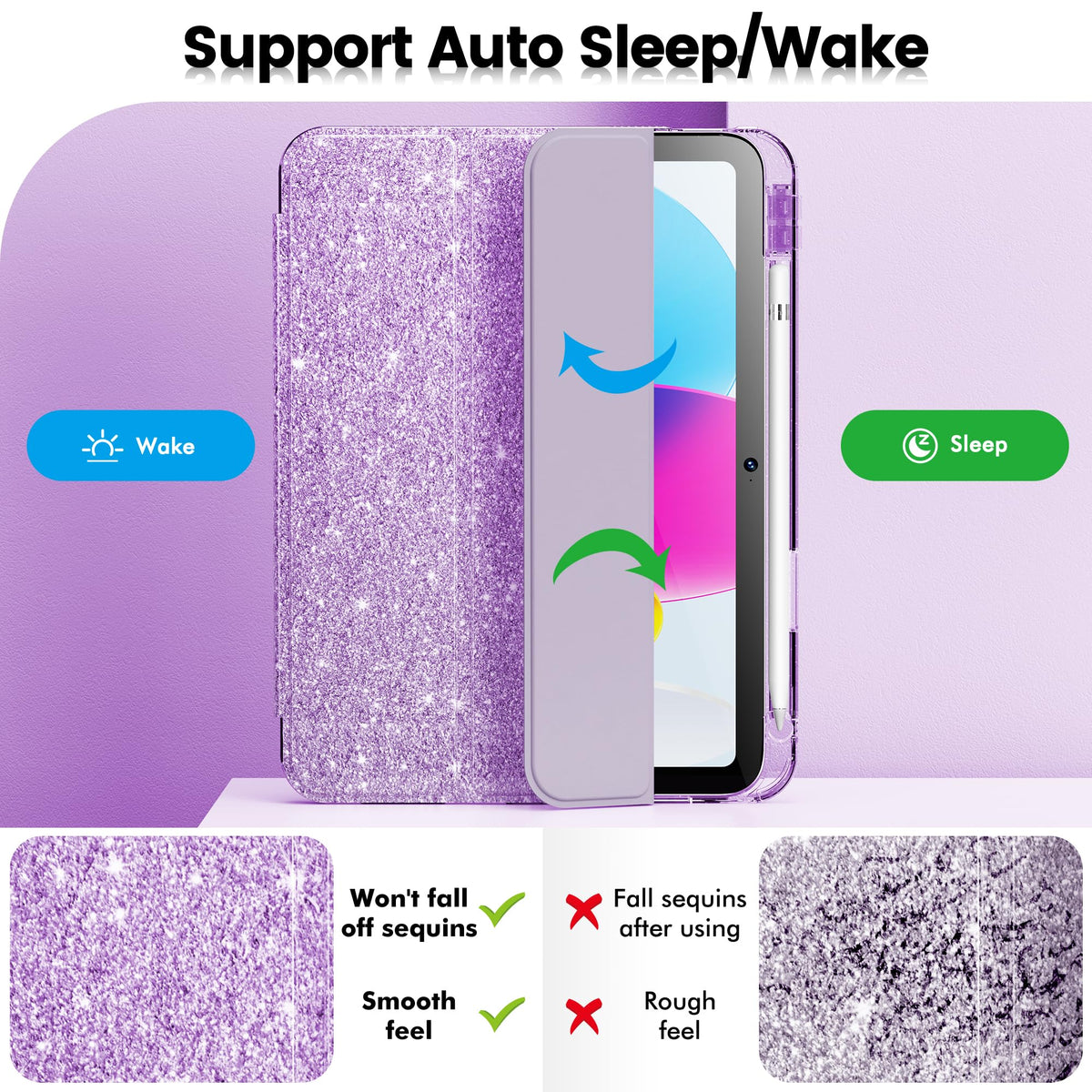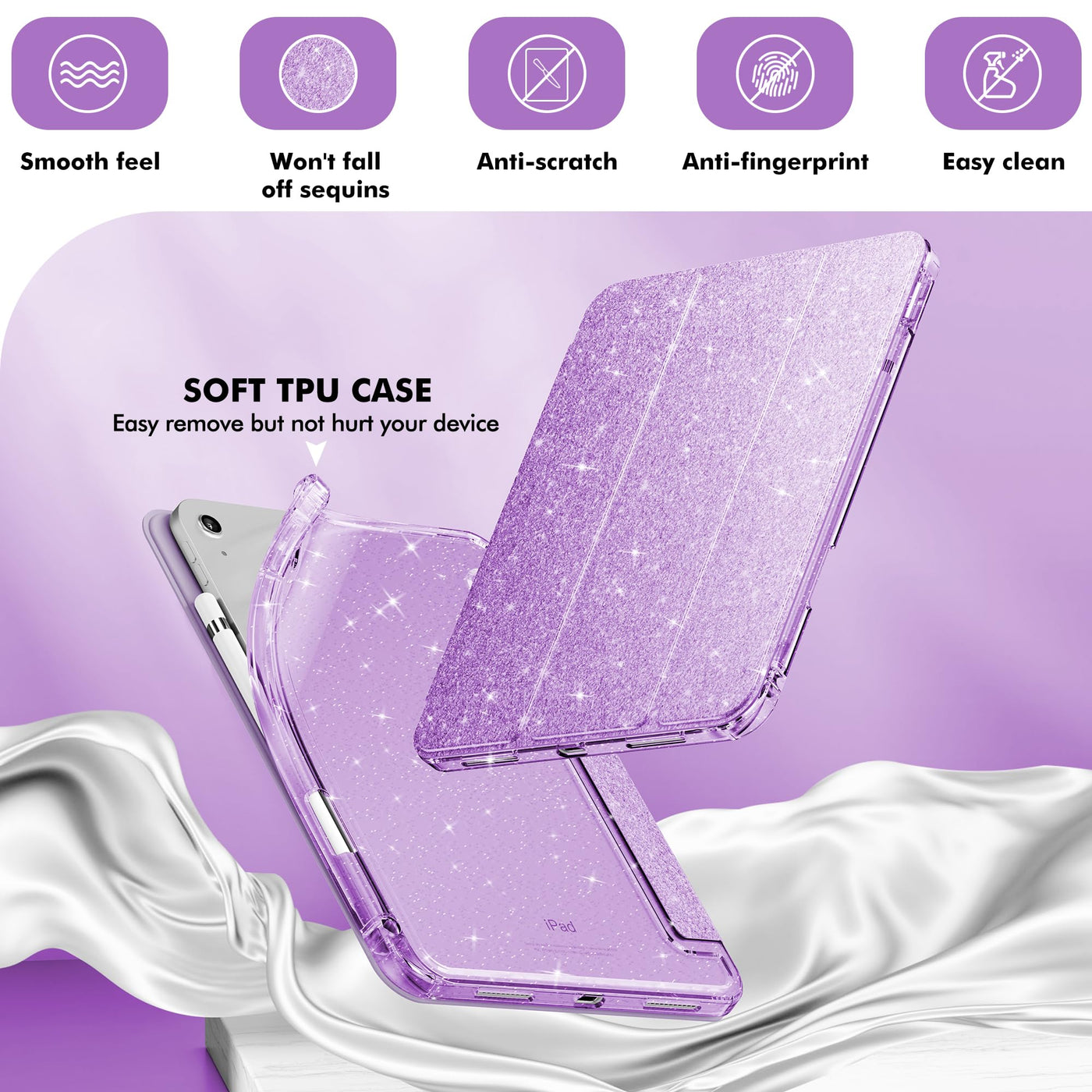 Infiland Compatible With Ipad 10Th Generation Case, Ipad Case 10Th Generation 10.9 Inch, Glitter Leather Cover With Sparkly Crystal Clear Back, Pencil Holder, Anti Yellowing,Purple