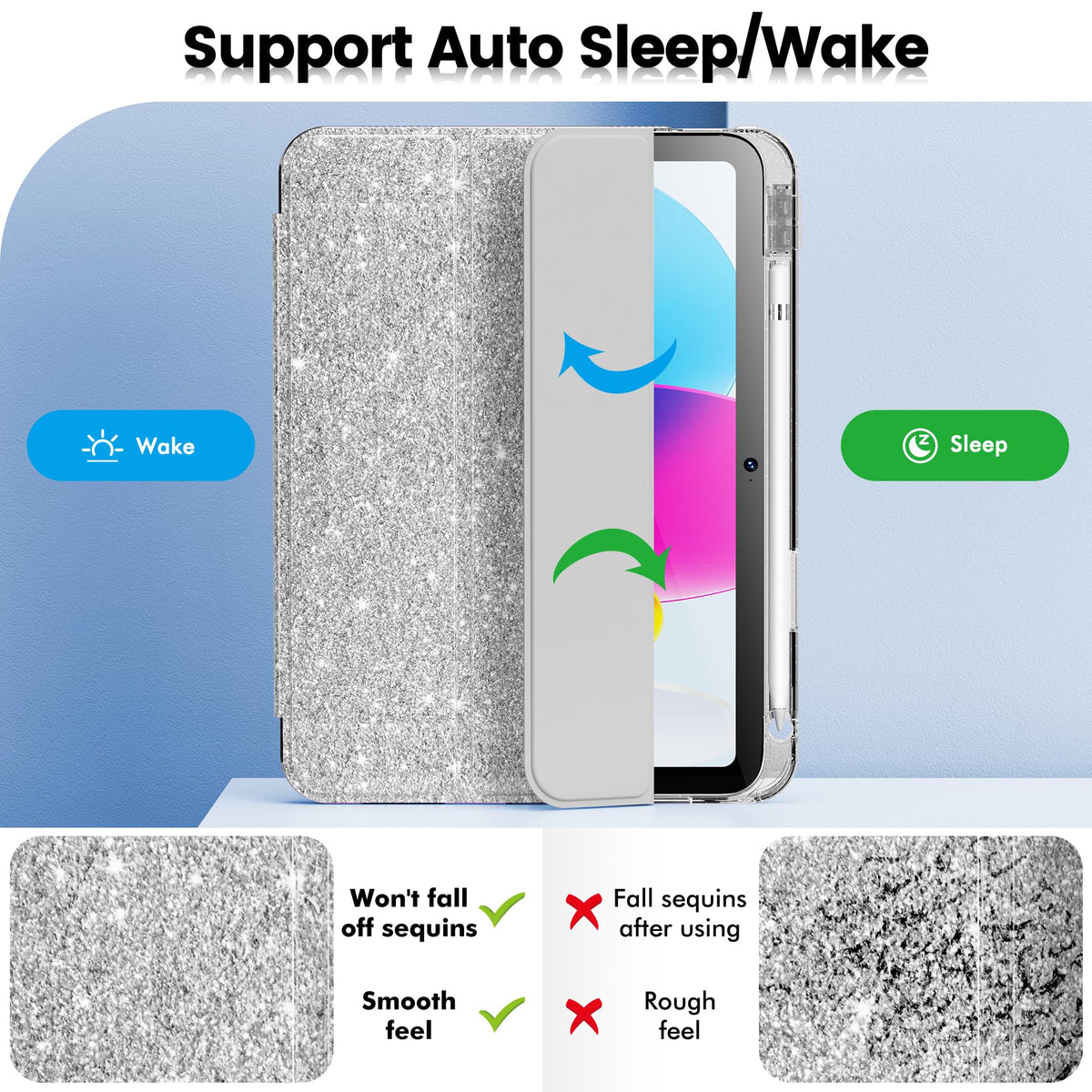 Infiland Compatible With Ipad 10Th Generation Case, Ipad Case 10Th Generation 10.9 Inch, Glitter Leather Cover With Sparkly Crystal Clear Back, Pencil Holder, Anti Yellowing, Silver