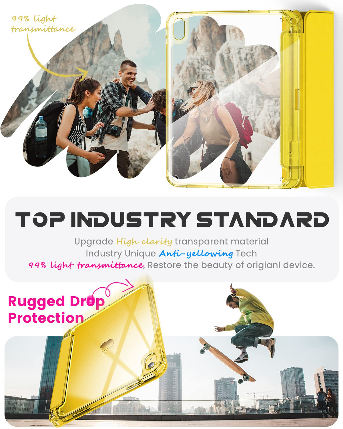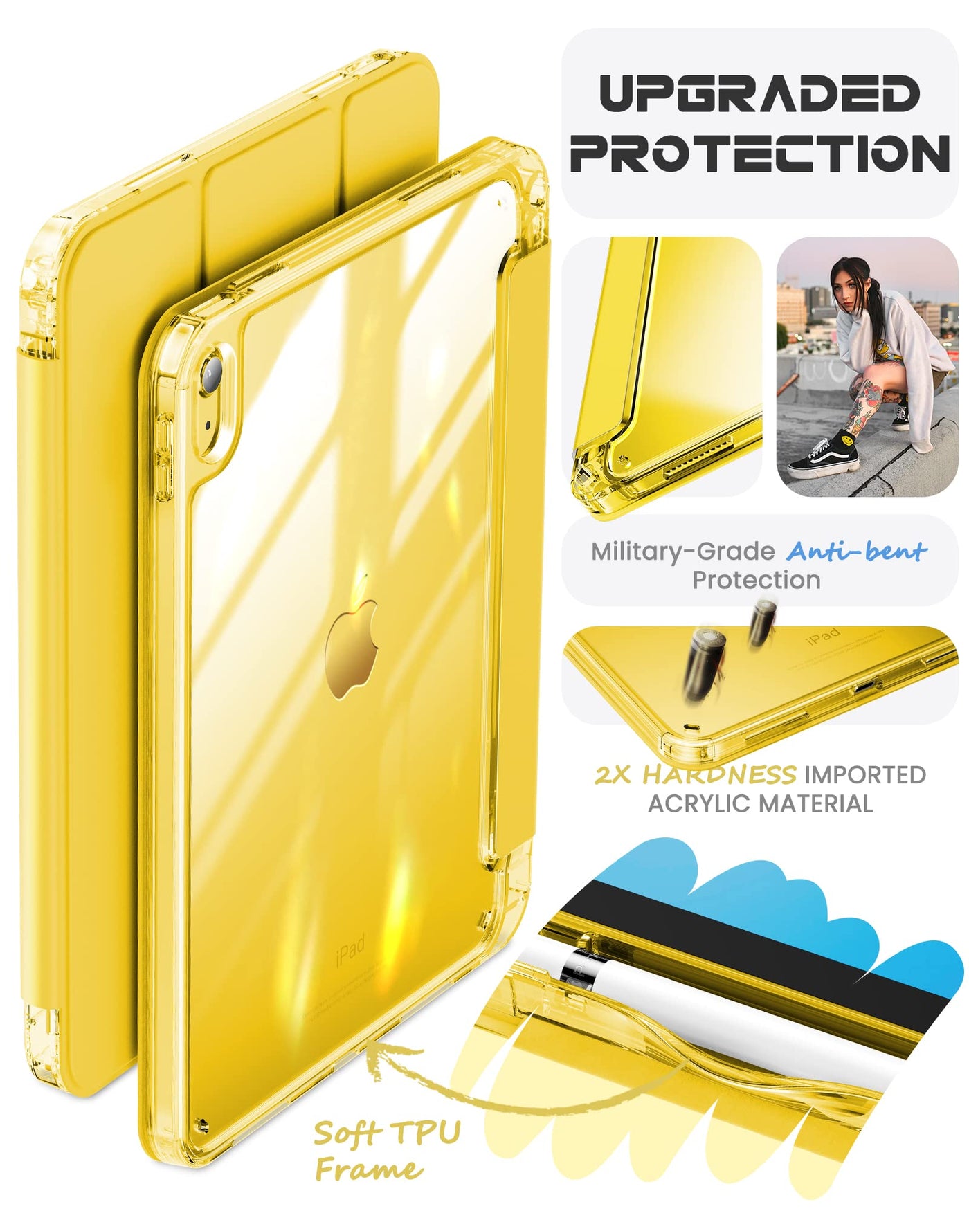 Infiland Compatible With Ipad (A16) 11Th Generation 11 Inch 2025 Case, Ipad 10Th Generation Case 2022 10.9 Inch 2022, Crystal Clear With Slot For Pencil & Charging Adapter, Bright Yellow