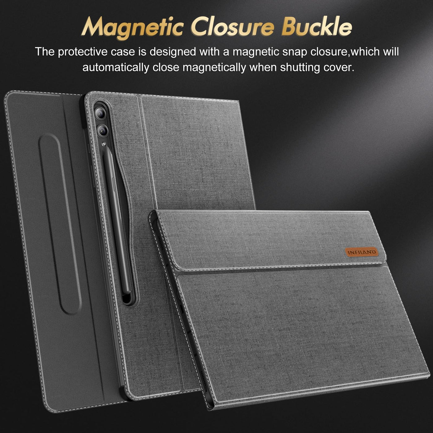 ? Designed By Infiland, A Local Business In Us, This Case Is Born To Protect And Perfectly Fit Your Samsung Tab S9+ Plus/Tab S9 Fe Plus 12.4 Inch Sm-X810/Sm-X816B/Sm-X818U/Sm-X616B 2023 Release Tablet. Please Do Confirm Your Tablet Model Number Before Purchasing. | ? Comfortable Viewing Angles Help To Reduce Eye Fatigue And Allow You To Watch A Movie Or Tv Show For A Longer Time. And Unique Closure Buckle Keeps The Cover Securely Closed While On The Go, This Thoughtful Design Makes You Get Rid Of Worrying About Tablet Slipping Or Falling Out And Protects The Tablet In A More Secure Way. | ? Premium Pu Leather Exterior With More Anti-Slip Microfiber Interior, Makes The Case Extremely Easy To Clean. Watching A Movie Or Tv Show In Landscape Mode, You Will Be Able To Enjoy A More Comfortable Full Screen Viewing Experience. | ? Wake Up Or Sleep Your Tablet While Simply Opening Or Closing The Front Flap. With Such User Friendly Design, You Are Able To Take More Time Out To Enjoy Your Family Time Instead Of Charging For The Tablet Frequently. | ? Stylish Yet Unassuming Case, Brings You A More Elegant Visual Experience. Without Other Complicated Structure, The Case Will Accompany You For A Longer Time And Deliver You A More Comfortable Grip. With Only 1.06 Pounds Weight, This Case Won'T Add Much Bulk To Your Tablet, Allowing You To Hold The Tablet At Ease For A Long Time.