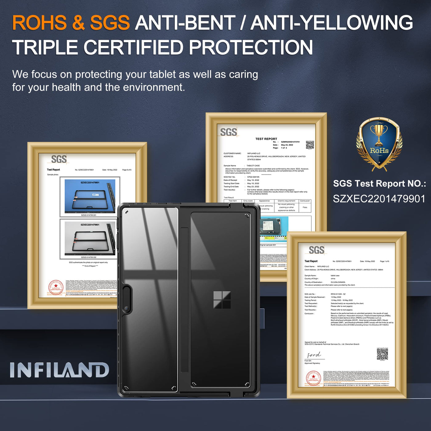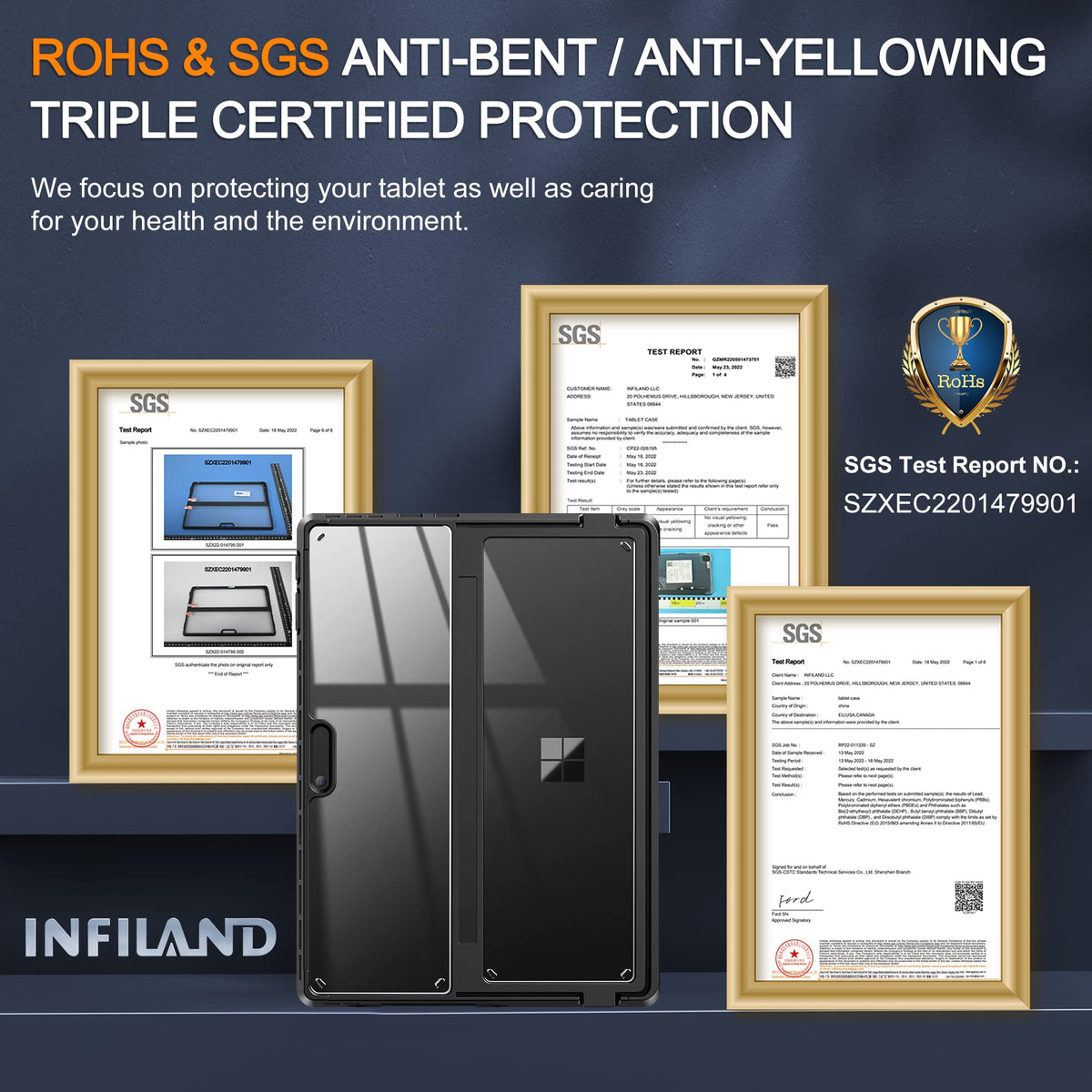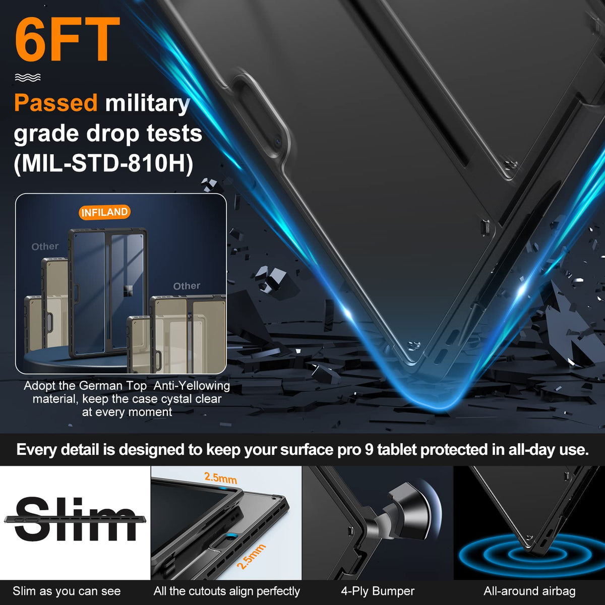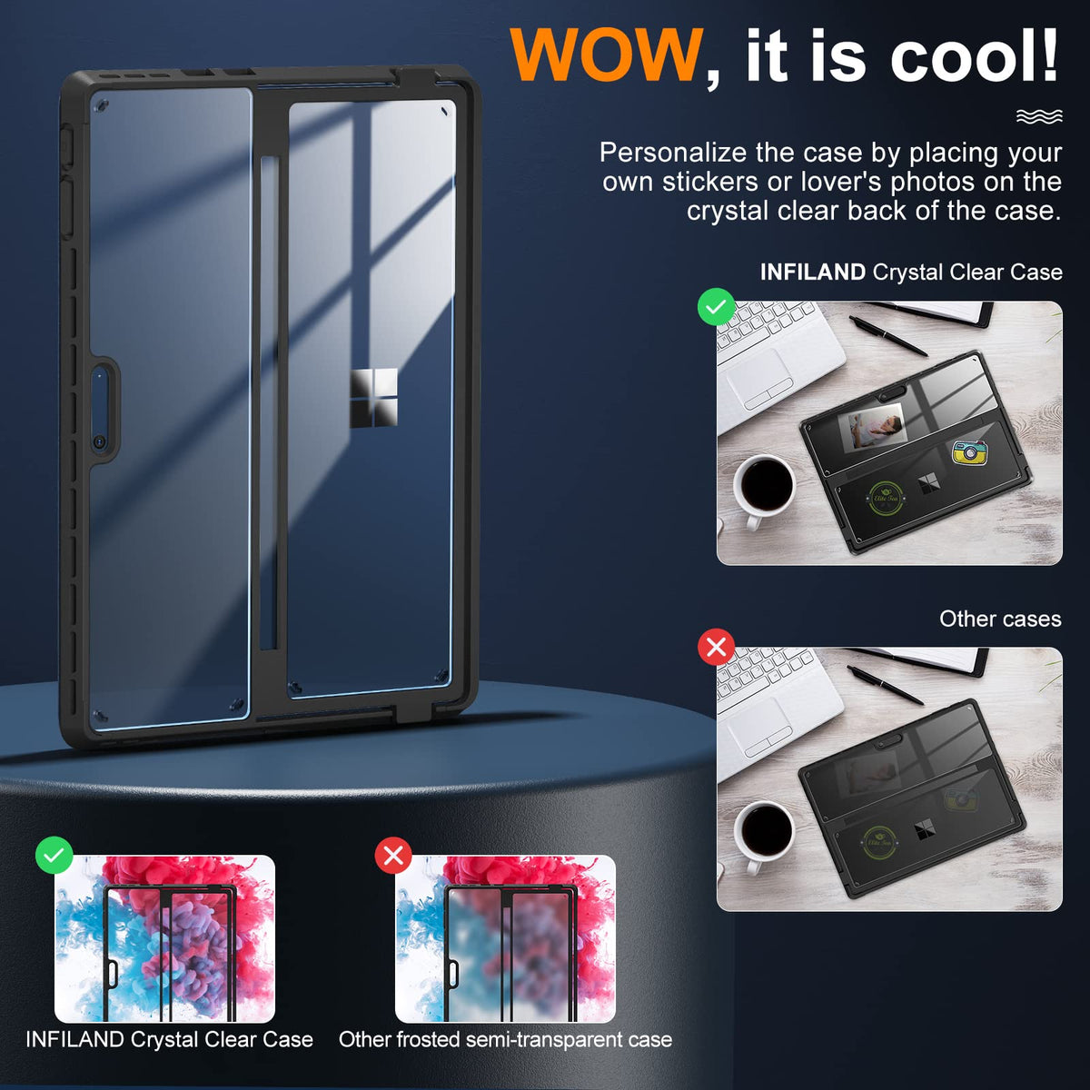 ???Lifetime Service & Lifetime Replacement?As A Customer, You Will Get Not Only A Case, But Also A Lifetime Warranty. If There Are Any Quality Issues During Use, You Can Easily Ask For A Replacement Without Hassle Return Process (The Way To Reach Infiland Team Via Amazon Message Directly: Move Back To The Top Of The Page, Click ''Infiland Llc'' Under The ''Purchase Now'' Button, Then ''Ask Product Question'')! | ???Lightweight & Keep 100% Flexibility Of The Surface Pro Keyboard?Infiland Crystal Clear Series Cases Offer The Best Protection While Keeping The Full Flexibility Of The Surface Pro Keyboard Without Adding Much Bulk. Compatible With Microsoft Surface Pro 9 13'' 2022 Tablet Only. Will Not Fit Other Surface Tablets. Work With/Without Surface Pro Signature Keyboard & Surface Slim Pen 2. | ???100% Show Off Original Beauty Of Tablet & Customize Your Own Style Case?Infiland Case Adopt German Imported Rohs Materials, Has Passed Multiple Military Grade Drop Tests With Mil-Std-810H, The Hardness Of Back Is 4 Times Higher Than Other Normal Clear Case. No Fear Of Any Impact Resistance On The Back. It Protects Surface Pro 9 Tablet As Well As Caring For Your Health And The Environment. Plus, It Shows Off The Original Beauty Of Tablet And Allows To Customize The Back With Your Own Stickers. | ???Multi-Angle & Protect Surface Built-In Kickstand?Allows Surface Built-In Kickstand To Be Adjusted To Different Angles For Better Viewing Or Typing Without Removing The Case. And Add A Layer Protection For The Surface Built-In Kickstand, No Need To Worry About The Scratching Kickstand Issue. | ???Thickened Soft Frame & Easy Carrying?Infiland Crystal Clear Series Cases Are Made Of Tpu Soft Frame+ Pc Hard Back, Super Thin Design Makes It More Convenient To Slip The Surface Pro 9 Case Into Bag Or Backpack. Plus, The Thickened Soft Frame Allows To Remove Surface Pro 9 Tablet Without Worrying About Marring Corners And Better Against Daily Impact.