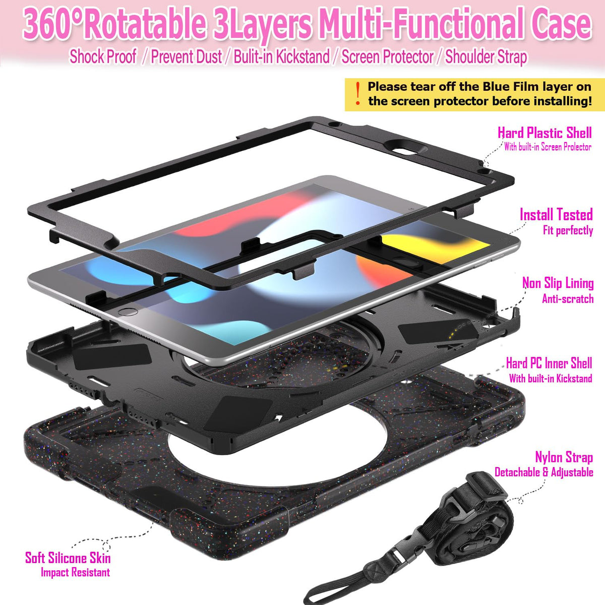 Lx Suncx For Ipad 10.2 Case 9Th Generation 2021 / 8Th Gen 2020 /7Th 2019,Shockproof Kids Case With Screen Protector,Rotating Sta