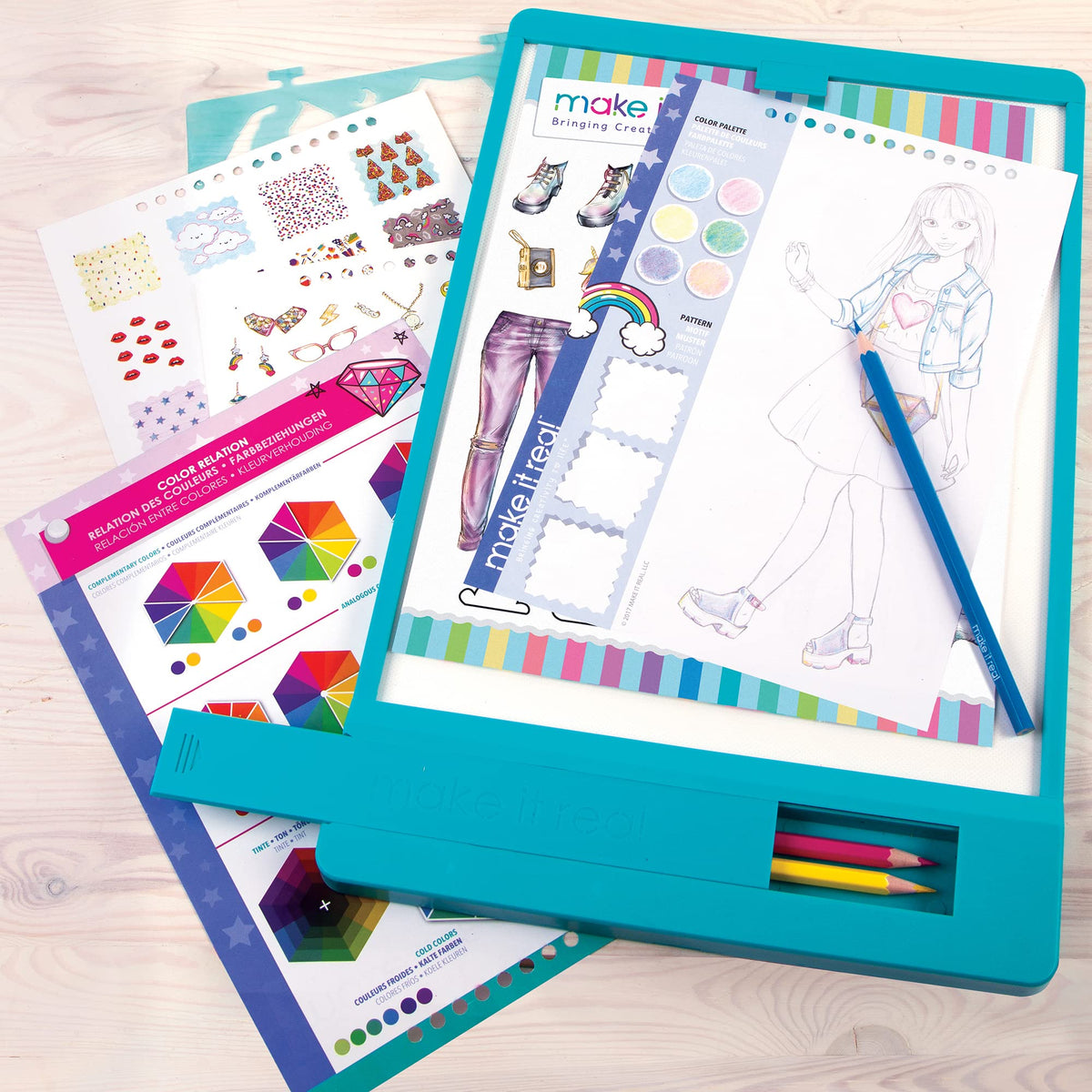 Fashion Design Mega Set With Light Tablemini Fashion Mavens Can Get Started With The Fashion Design Mega Set, Featuring Everything Needed To Trace, Draw, And Color. By Using The Lightbox To Trace Over Pre-Printed Designs, Kids Will Learn Basics Of Fashion Sketching And Get Style Inspired!This Set Includes:*Light Table For Tracing Pre-Printed Designs*Sketchbook With Design Guide*Colored Pencils*Stencils*Stickers*Exclusive Instruction Manual And Inspirational Dream Guidedevelopmental And Learning Toys That Kids Love!As Parents Ourselves, We At Make It Real Understand The Need Not Only For Compelling Product That Provides A Great Play Experience, But Also For Product That Is Safe And Will Help Children Develop And Grow.The Fashion Design Mega Set Develops The Following Skills While Your Kids Are At Play:*Fine Motor - Fine Motor Skills And Hand Dexterity Focus On The Use And Coordination Of Small Muscles In The Wrist, Hand, And Fingers To Perform Activities Like Writing, Sketching, Painting, And More.*Cognitive - The Development Of Cognitive Skills Throughout A Person'S Life Enables Him Or Her To Learn, Understand, And Assimilate Information. Cognition Includes The Ability To Pay Attention, Reason, Find Solutions To Problems, Make Comparisons, Analyze Data, Evaluate, And Make Comparisons.*Self-Actualization - Self Actualization Is The Process Of Using Creativity, Spontaneity, And Independence To Reach An Individual'S Full Potential. This Includes The Ability To Communicate And Share Ideas.Make It Realmake It Real Manufactures And Distributes Beautiful, Compelling Product For Tween Girls Around The World. Surrounding Every Product That We Produce Is A Content Experience That Gives Young Women A Window Into The Real World Of Design And Creativity.Every Make It Real Product Is Tested To The Highest Toy And Cosmetic Safety Standards, Or We Do Not Ship It.