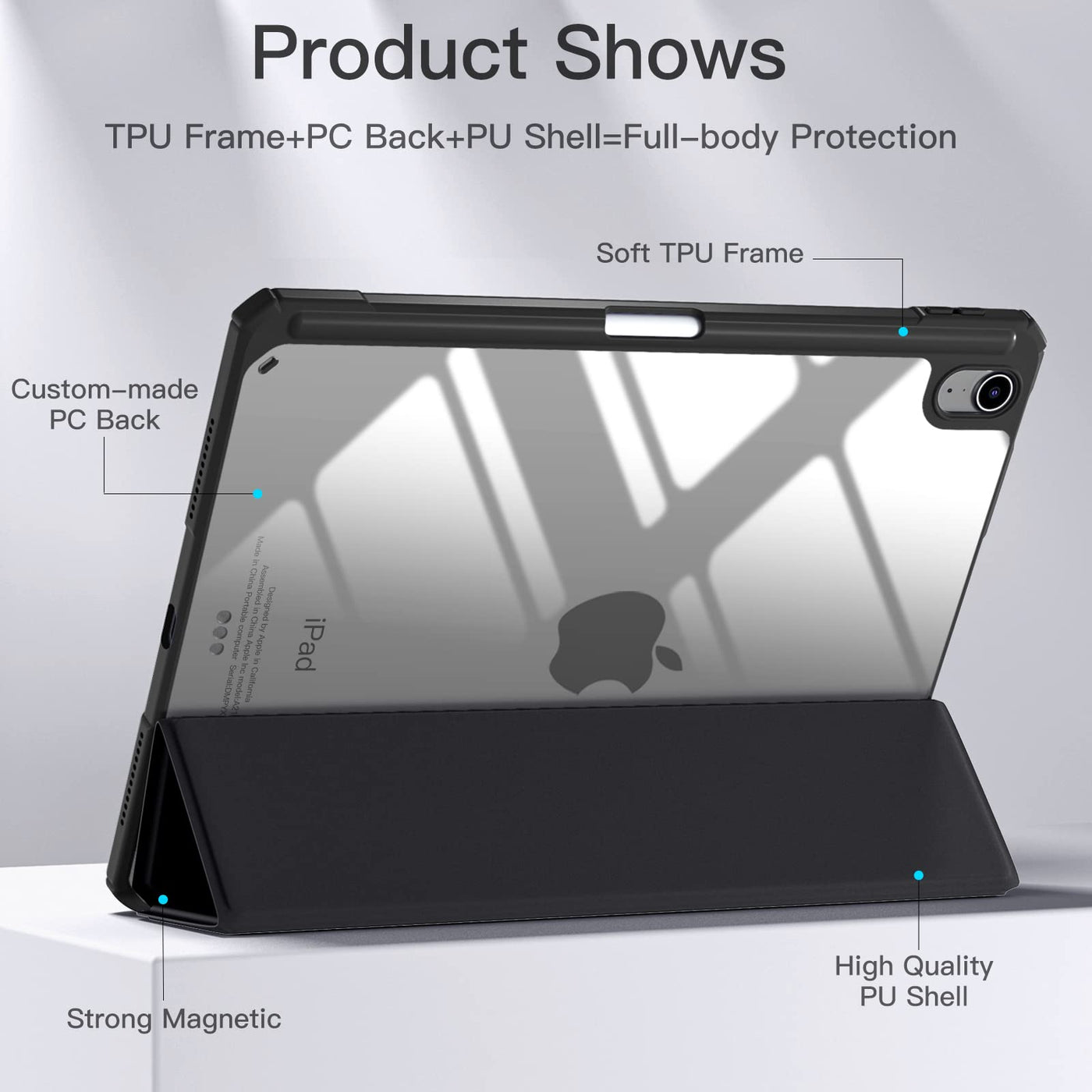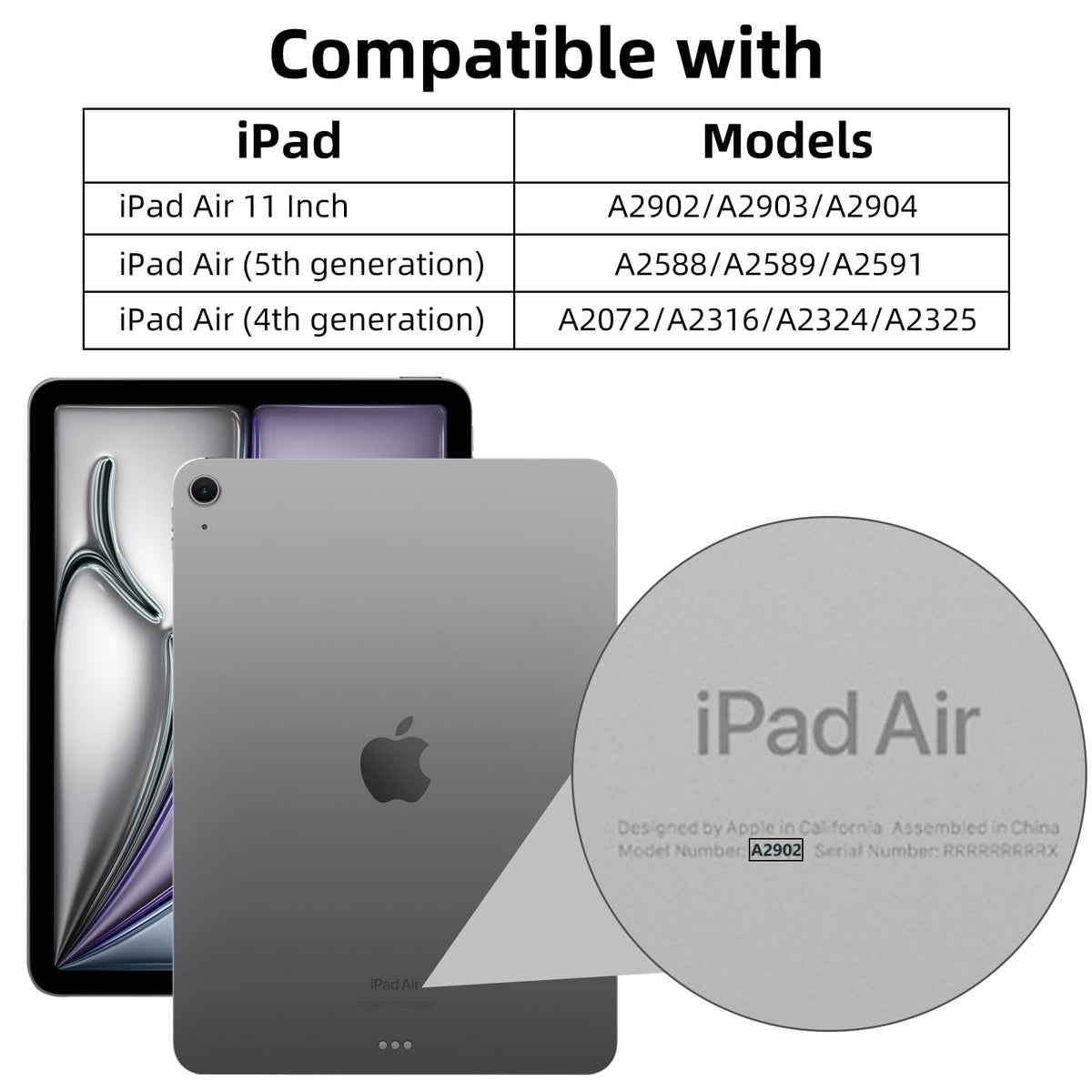 Compatible With Ipad Air 11 Inch / 5Th/4Th Generation:This Protective Crystal Clear Case Is Designed For Ipad Air 11 Inch 2024 Released And For Ipad Air 5Th/4Th Generation 2022/2020 (Model A2588/ A2589/ A2591/ A2072/ 2316/ 2324/ 2325)Tablet, Not Compatible With Any Other Ipad Models. Please Check The Back Bottom Of Your Ipad To Make Sure The Right Model Case You Chooseall-Around Protection:High Quality Pu Exterior, Soft Tpu Frame And Hard Protective Crystal Clear Pc Back, Provide Your Ipad Maxium Protection Against Drops, Bumps, Scratchesauto Wake/Sleep Function:When You Close The Cover, The Case Forces Your Device To Sleep Automatically. Alternately, Open The Cover To Instantly Wake-Up Your Devicecharge Directly:It Is Convenient To Charge, No Need To Take Off The Case Before Charging Your Tabletkindly Reminder:1. Case Designed For Ipad Air 11 Inch 2024 Tablet,And For Ipad Air 5Th/4Th Generation 10.9 Inch 2022/2020 Tablet2.Only Case You Will Get, No Apple Pencil And Ipad Included