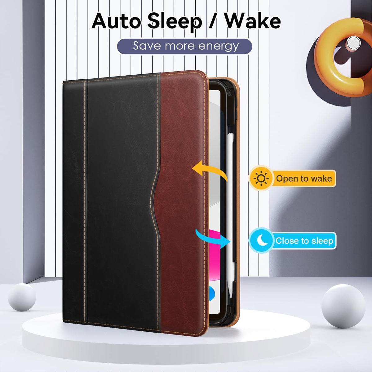 Okp Case For Ipad 10Th Generation 2022 , 10.9 Inch Ipad 10Th Case With Multi-Angle Viewing Pu Leather Stand Cover With Pencil Holder & Pocket, Auto Sleep/Wake, Black Brown