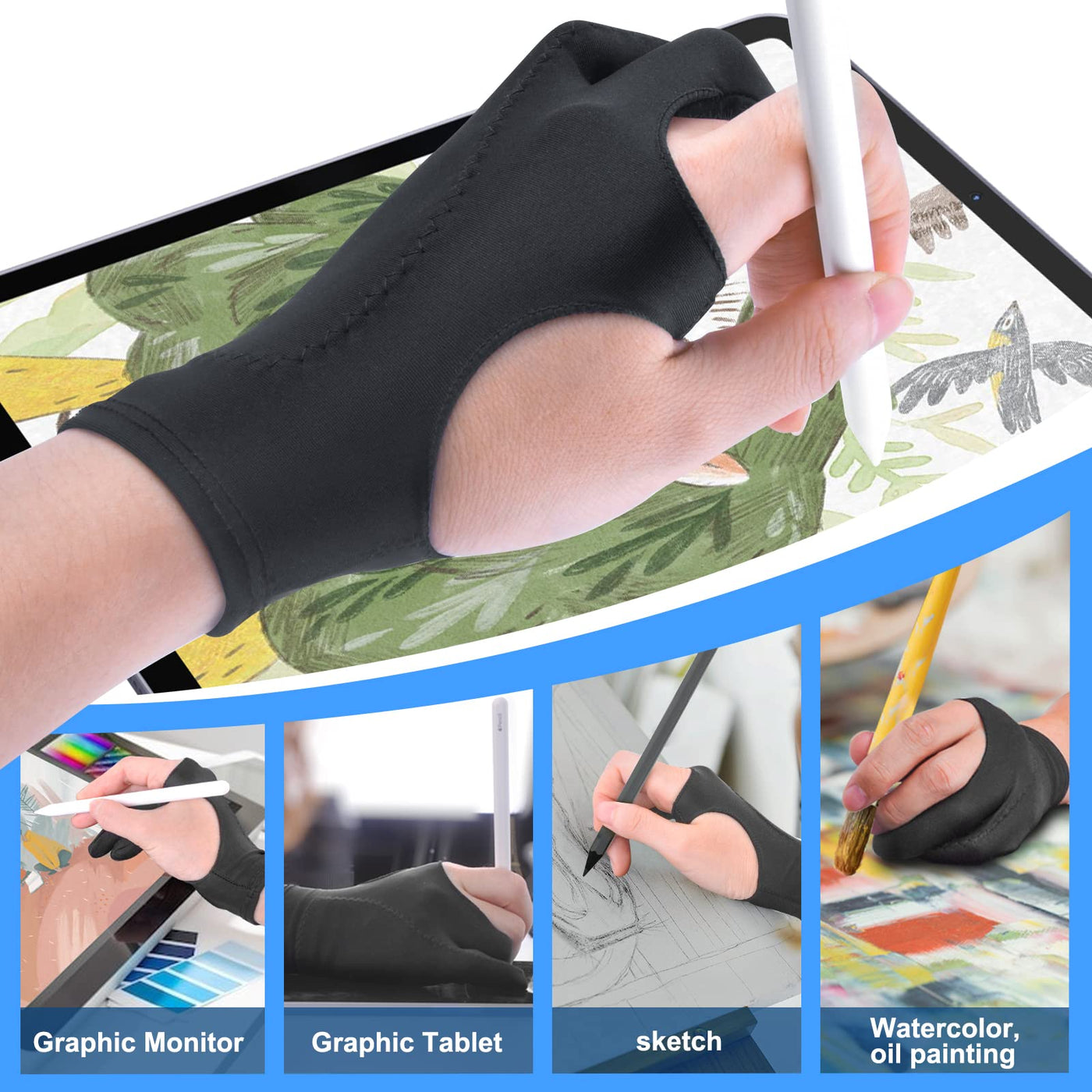 [Palm Rejection] Artist Drawing Glove 4 Pack Ipad Gloves For Touch Screen Pc Graphics Tablet Left And Right Hand 3 Layers Paddin