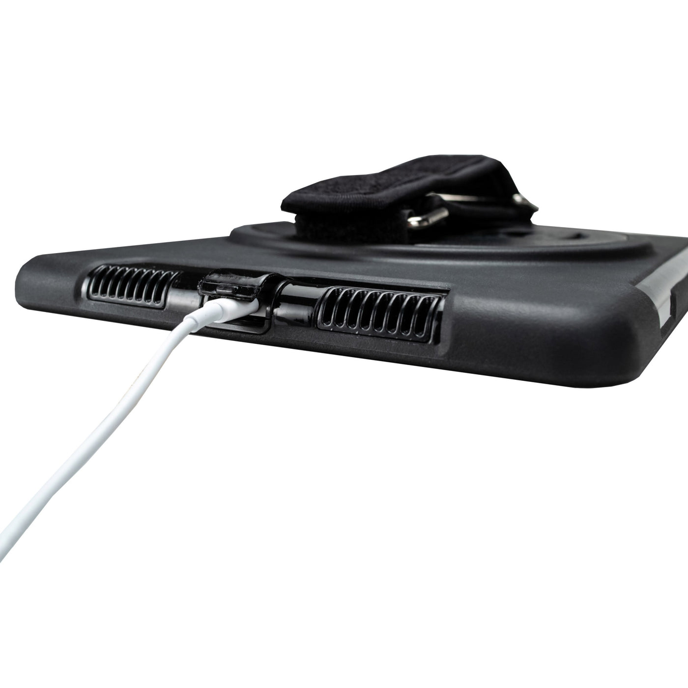 This Protective Tablet Case Keeps Your Ipad Shielded From Collisions And Falls. Its Durable, Rugged Frame Gives You Heavy-Duty Impact Shielding Without Compromising On Usability. An Additional Silicone Jacket Offers Further Protection For Your Device. The Case Is Designed To Allow Full Access To Your Ipads Ports, Buttons, And Jacks. This Case Is Also Outfitted With A Resizable Hand Strap, Plus A Rotating 360 Degree Grip Ring, Giving You A Comfortable Handheld Solution In Portrait And Landscape Orientations. Also Included Is A Foldout Kickstand For Fast, Easy Tabletop Display Options.