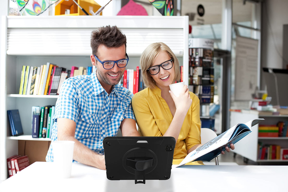 This Cta Digital Protective Case With Built-In 360 Rotatable Grip Kickstand For Ipad Air 10.9 In. And Ipad Pro 11 In. Keeps Your Ipad Protected From Bumps, Drops, Or Shocks. Its Durable, Rugged Frame Provides Heavy-Duty Impact Shielding Without Compromising On Usability. The Case Is Designed For Full Access To Your Ipads Ports, Buttons, And Jacks. The Thick Silicone Jacket Offers Further Protection For Your Device. An Adjustable Hand Strap And Rotating 360 Grip Ring Gives A Secure, Comfortable Handheld Solution In Both Portrait And Landscape Orientations. Also Included Is A Foldout Kickstand With Rubber Surface For Fast, Skid-Free, And Easy Tabletop Display Options.