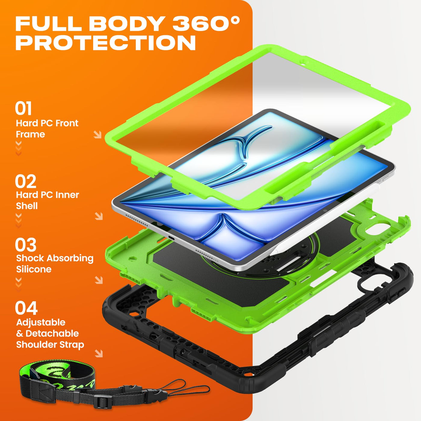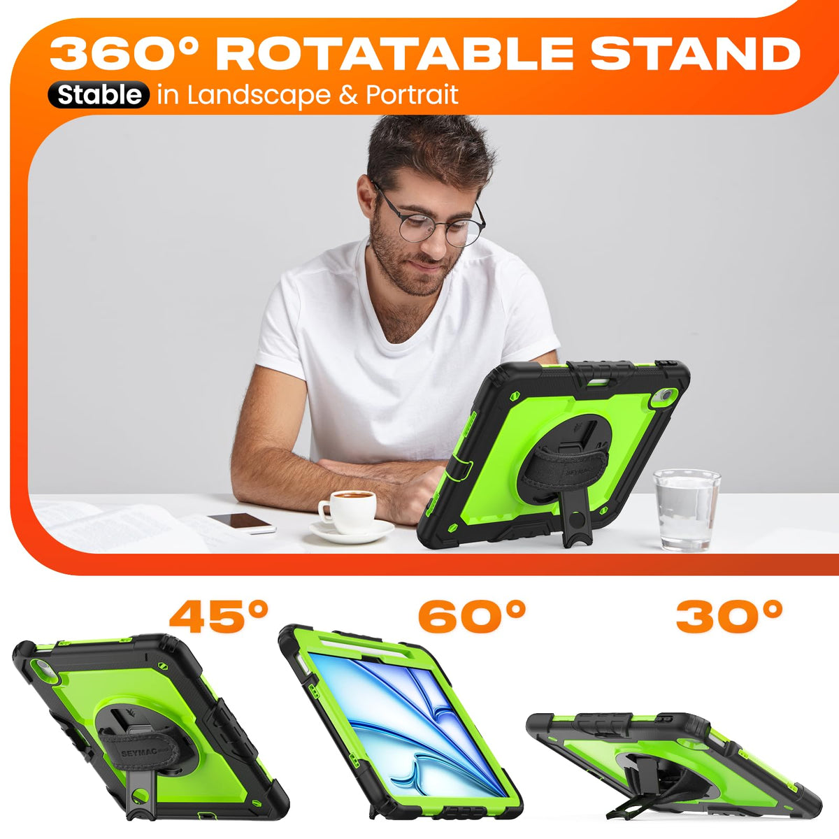 Seymac Stock Protective Case For Ipad Air 11 Inch M3 Case 2025 For Ipad Air 11 Inch M2 Case 2024 For Ipad Air 7Th 6Th Generation 11 Inch Case A3266 A3267 A2902 A2903 With Versatility, Flexibility And Heavy Duty Protection: 1.Case For I-Pad Air 11 Inch Case M3 M2 With 360 Rotating Adjustable Stand Provides Stable At Multiple Angles For Comfortable Viewing, Typing, Drawing, Whether It S Movie Night Or Courses, Case For I Pad Air M3 M2 11 Inch Case Has You Covered. 2.Case For Ipad Air 11 Inch Case M3 M2 With Built-In Pencil Holder Provides Easy Storage And Accessible For Note-Taking And Drawing, Compatible With Pencil Attaches And Charges For Pencil Pro (Please Note That Air 11 Inch M3/ M2 Only Supports Wireless Charging For The Pencil Pro), Making The Case For Ipad Air 11 Inch M3 M2 Case A Good Choice For Professionals, Students, Creatives. 3.Case For Ipad Air 11Inch Case M3 M2 With Soft Hand Strap For A Comfortable One-Handed Handle Grip, Case For Ipad Air 7Th 6Th Generation 11 Inch Case Suited For Presentations,Navigation,Document Scanning, Suited For Business, Outdoor Use For Kids. 4.Case For Ipadair 11 Case M3 M2 With Shoulder Strap That Is Adjustable, Removable, Suited For A Wide Range Of Users And Activities, Offers A Hands-Free Experience That Lets You Carrying Case By Your Side When Go To School, Works, Or On Vacation. It Can Hang From Anywhere At All Times. 5.Protective Case For Ipad Air11 Inch Case 2025 2024 Is Combined A Anti-Slip Soft Silicone Outer Layer With A Pc Hard Inner Shell Offers Full-Body Protection For Ipad Air 7Th 6Th Generation Case 11 Inch. Heavy Duty Shock Protection Keep Case For Ipad Air 7 Case Safe From Impacts, With An Optional Screen Protector For Increased Defense Against Scuffs, Make Case For Ipad Air 6 Case Suited For Kid Or Outdoor Enthusiast. 6.Precise Cut-Outs Make Easy-Access To All Buttons, Ports, Camera. 7.User Manual Provides Easy And Clear Instructions, Video Guide On Webpage Provides Step-By-Step Instructions.