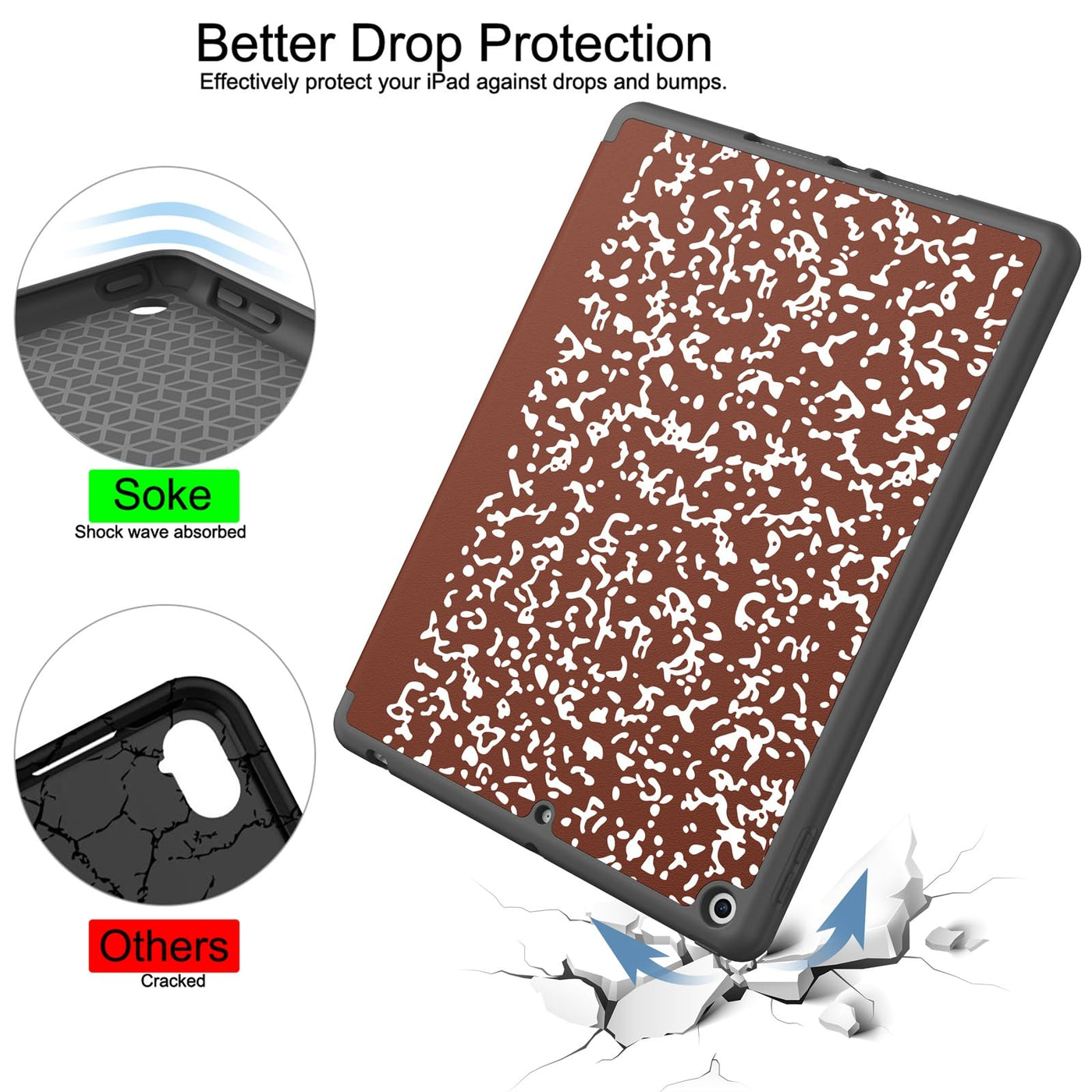 Soke Case For Ipad 9Th Generation 2021/8Th Gen 2020/7Th Gen 2019 With Pencil Holder Premium Shockproof Case With Soft Tpu Back Cover & Auto Sleep/Wake For Ipad 10.2 Inch, Book Brown
