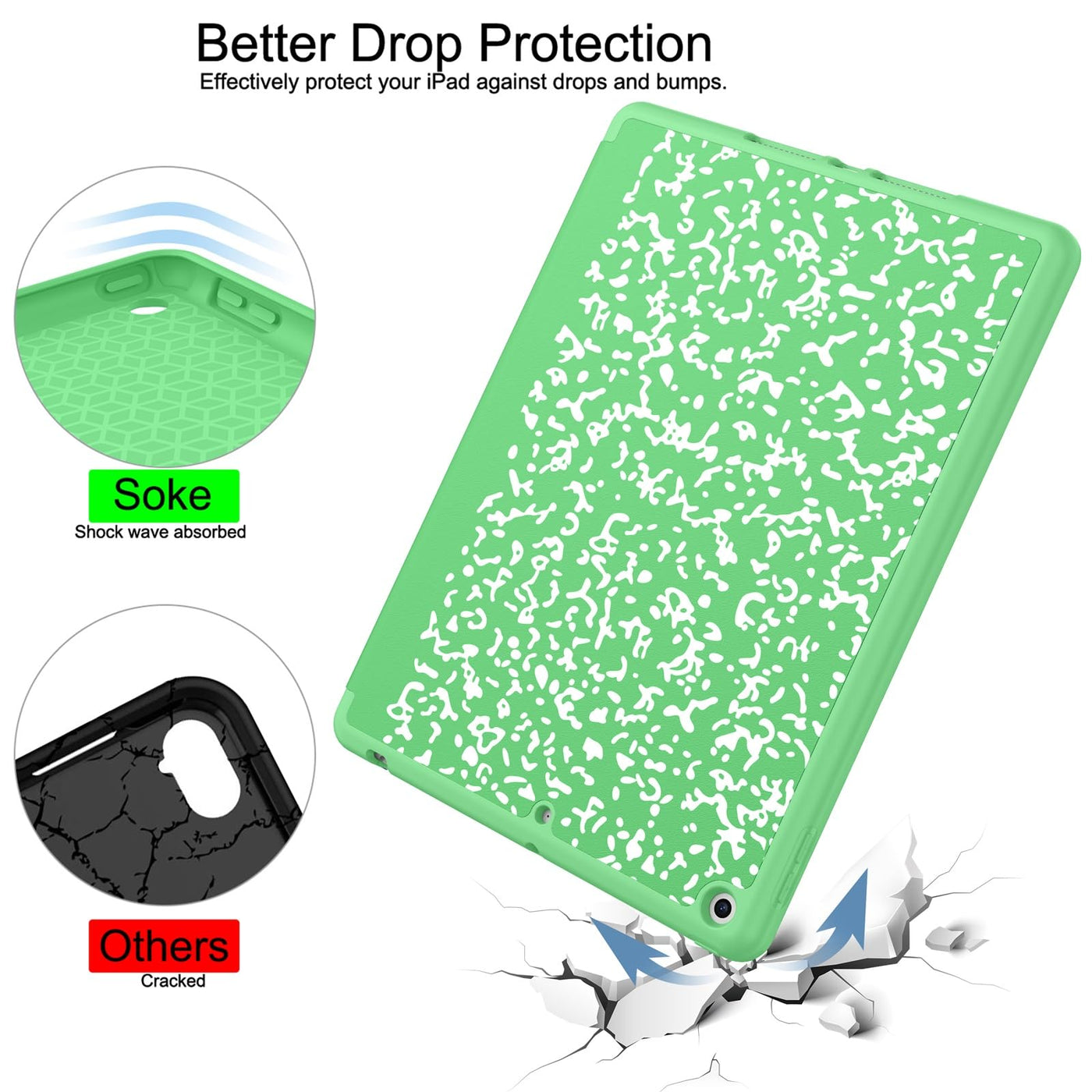 Soke Case For Ipad 9Th Generation 2021/8Th Gen 2020/7Th Gen 2019 With Pencil Holder Premium Shockproof Case With Soft Tpu Back Cover & Auto Sleep/Wake For Ipad 10.2 Inch, Book Green