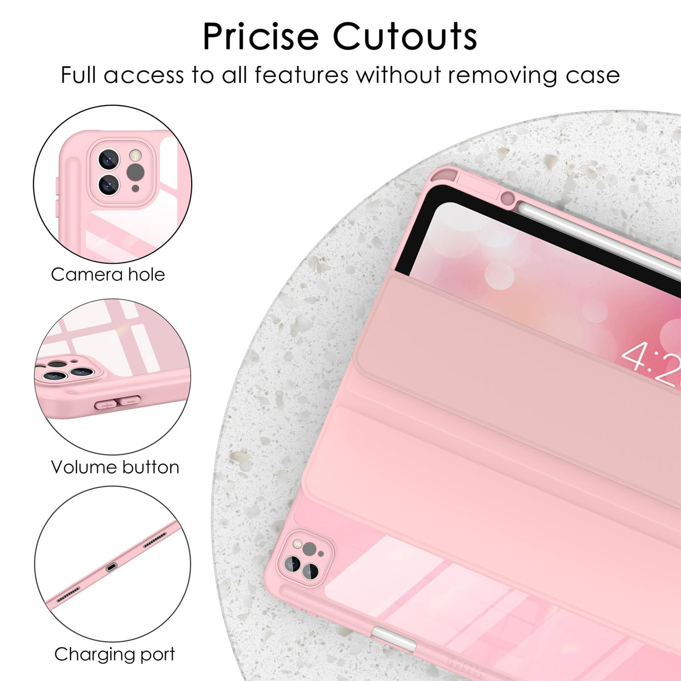 Soke Case For Ipad Air 13 M2 2024/Pro 12.9 (6Th/5Th/4Th Generation, 2022/2021/2020) Pencil Holder+Auto Sleep/Wake+Camera Protection, Shockproof Back Cover For Ipad Pro 12.9 Inch, Light Pink