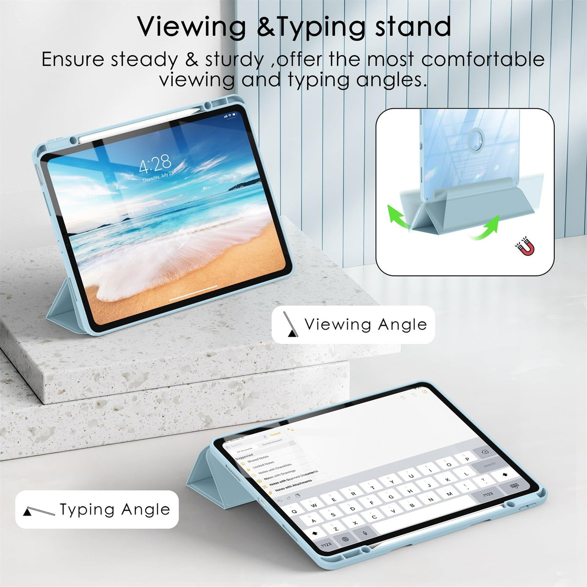 Soke Case For Ipad Air 13 M2 2024/Pro 12.9 (6Th/5Th/4Th Generation, 2022/2021/2020) Pencil Holder+Auto Sleep/Wake+Camera Protection, Shockproof Back Cover For Ipad Pro 12.9 Inch, Sky Blue