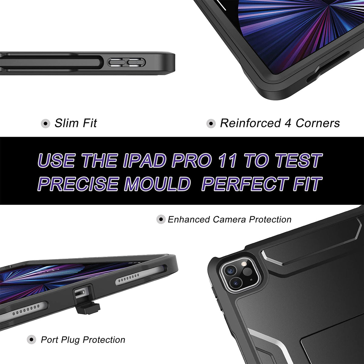 Soke Case For Ipad Pro 11 Inch 2022/2021/2020/2018/Ipad Air 5Th/4Th Generation,Built In Screen Protector Support 2Nd Apple Pencil Charging Heavy Duty Rugged Protective Kickstand Case Black