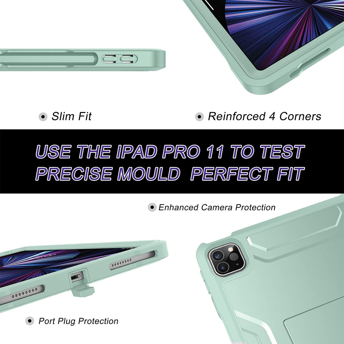 Soke Case For Ipad Pro 11 Inch 2022/2021/2020/2018/Ipad Air 5Th/4Th Generation,Built In Screen Protector Support 2Nd Apple Pencil Charging Heavy Duty Rugged Protective Kickstand Case Mint Green