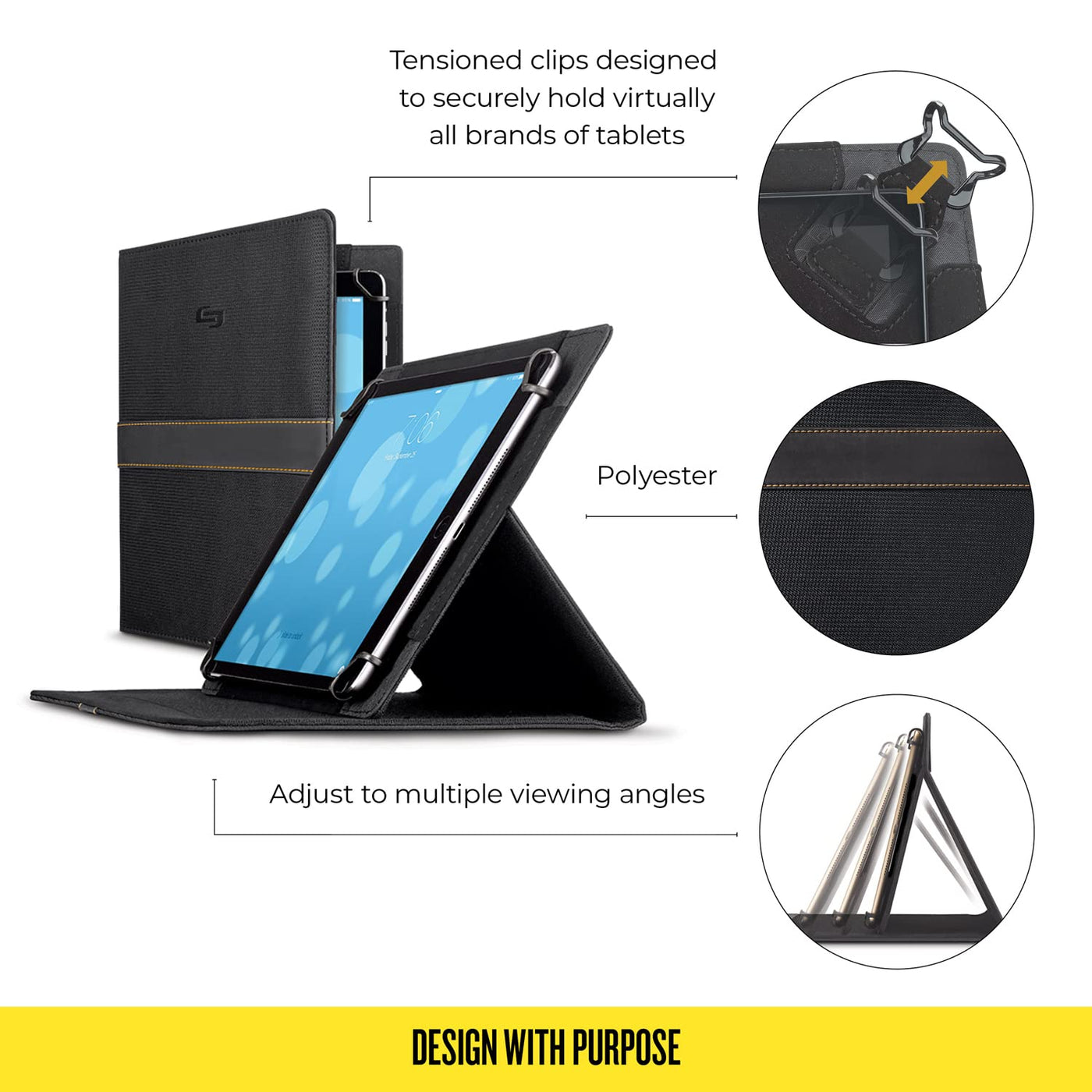 Solo Metro Universal Tablet Case Fits Tablets 8.5 To 11 Tablets And Easily Adjusts To Multiple Viewing Angles. The Magnetic Strap Ensures That The Case Stays Closed When Shut. The Polyester Material Makes It Easy To Clean. 1 Year Warranty.