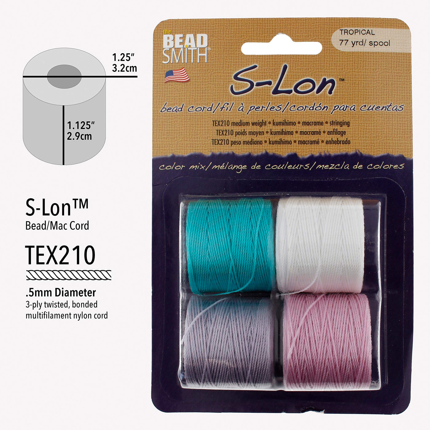 The Beadsmith S Lon #18 Nylon Cord Tropical Mix Tex210 Cord, .5Mm Diameter, 4 Pack, 77 Yard Spools For Stringing Beading C