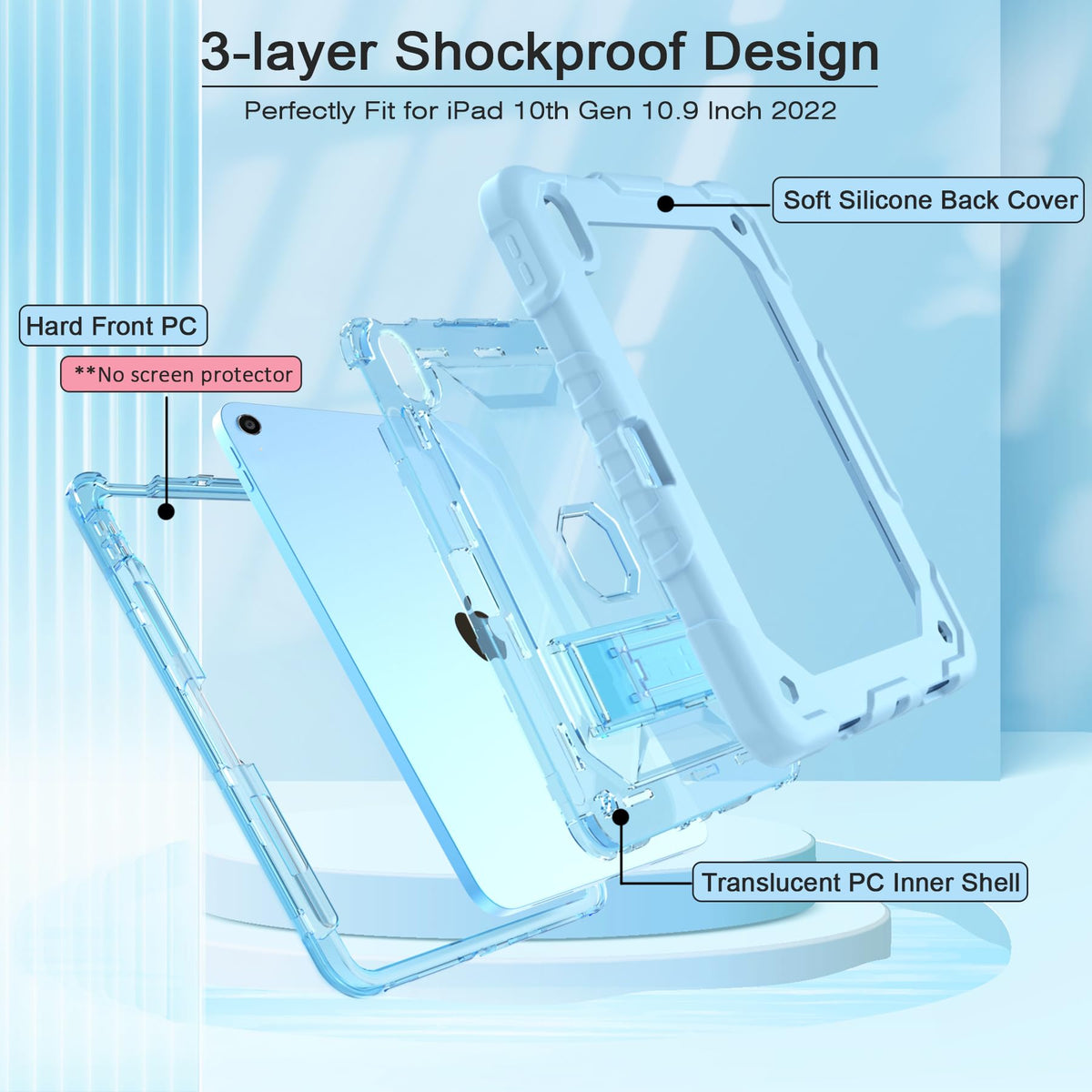 Timism Case For Ipad 10Th Generation Case 2022 With Shoulder Strap, Translucent Hard Pc Back Cover, Heavy Duty Full Body Shockpr