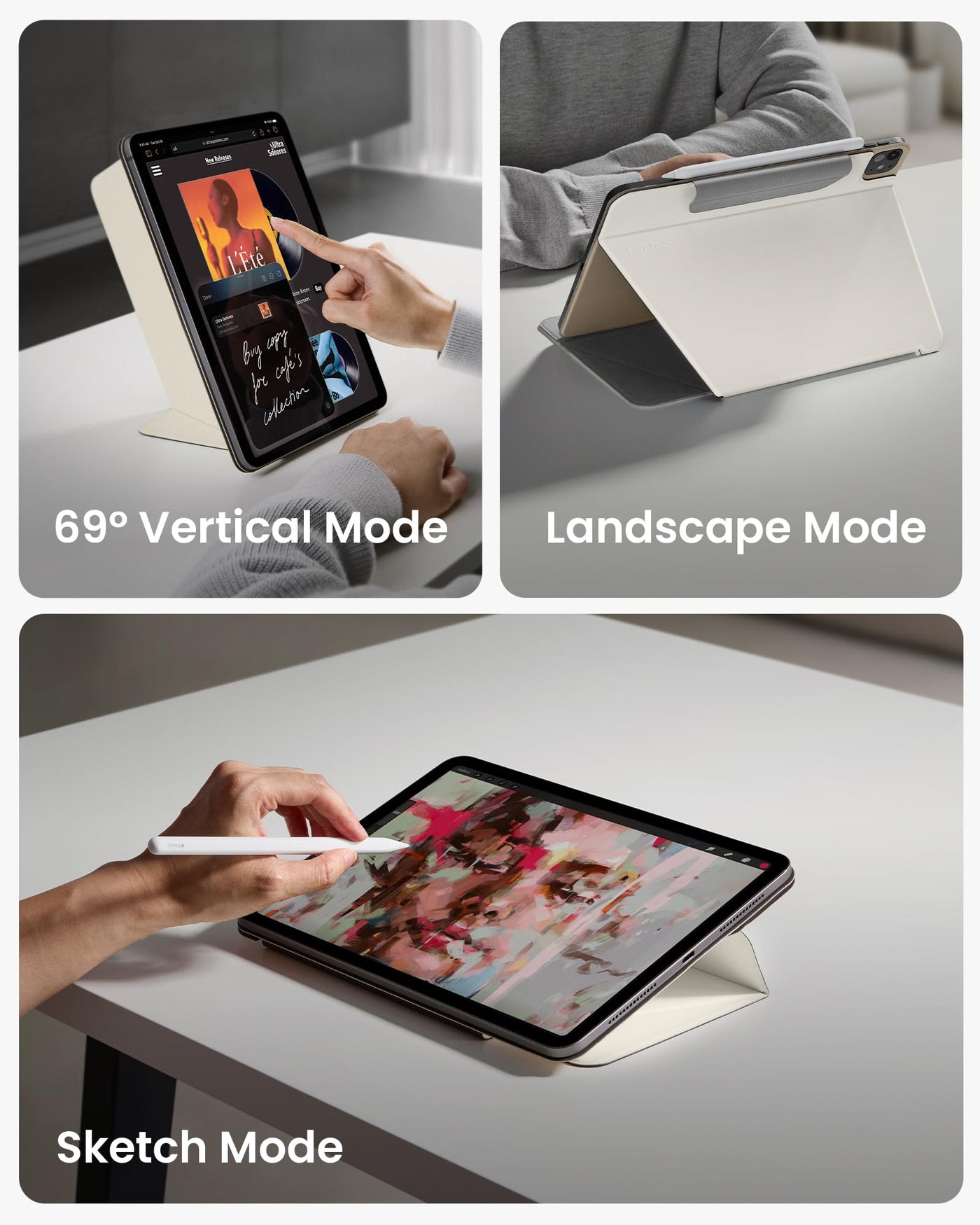 Tomtoc Ipad Pro Detachable Folio Case For 2024 New 13 Inch Ipad Pro M4 Only, Separable Slim Protective Panel & 4 Modes With Ultra Light Fiberglass Material, Support Apple Pencil Pro & Auto Wake/Sleep