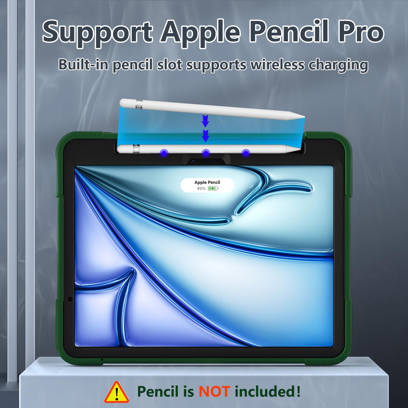 Case For Ipad Air 11 Inch Case M2 2024 (6Th Generation) Case With Sturdy Kickstand, Pencil Holder Supporfs Pencil Wirless Charging