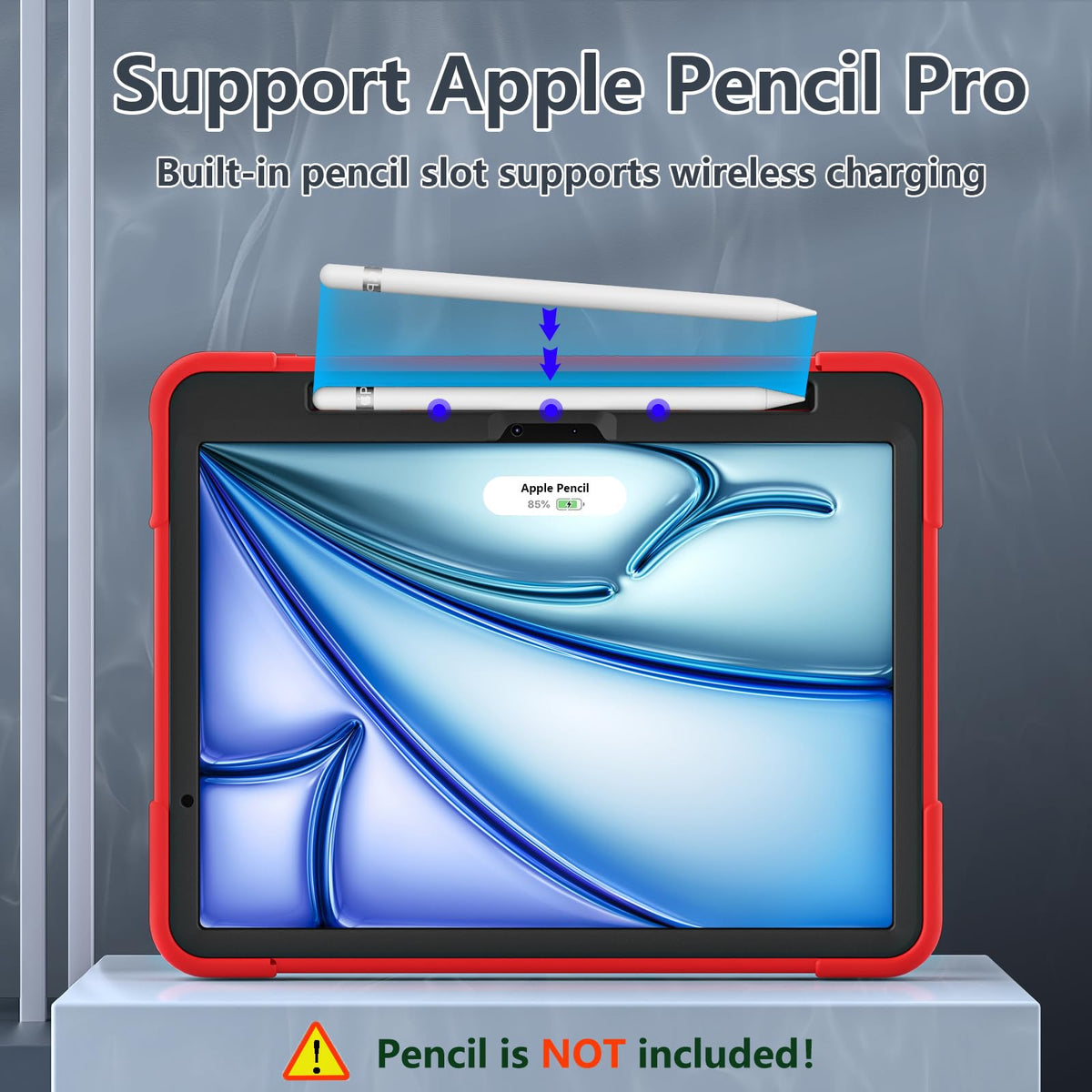 Case For Ipad Air 11 Inch Case M2 2024 (6Th Generation) Case With Sturdy Kickstand, Pencil Holder Supporfs Pencil Wirless Charging