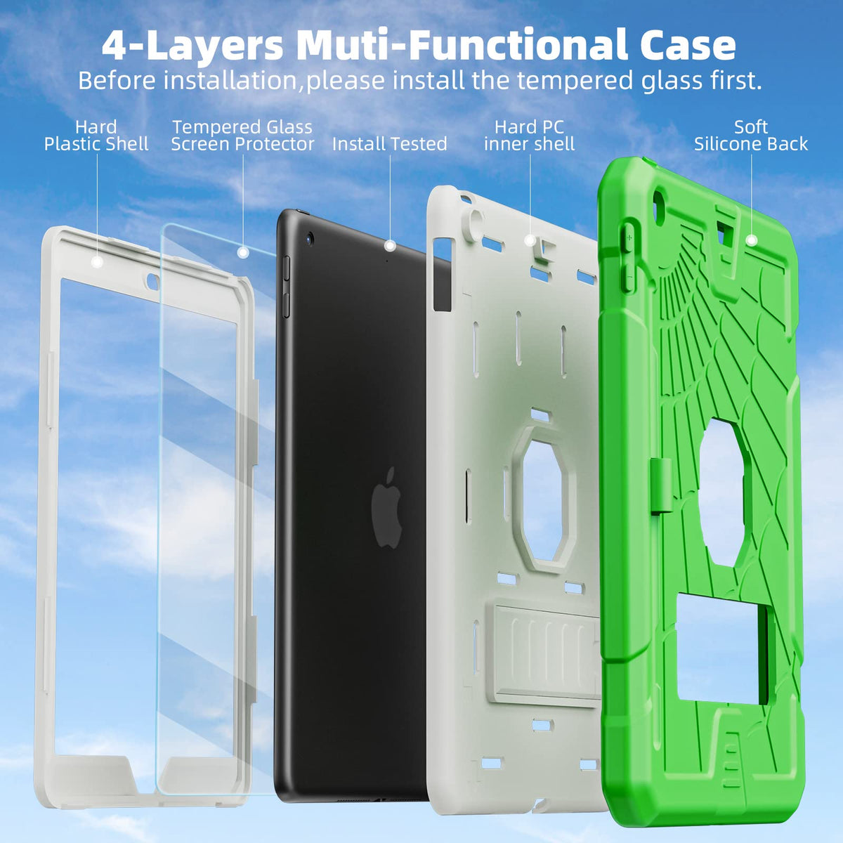 Tsqqst Ipad 5Th Generation Case 2017 / Ipad 6Th Generation Case 2018 9.7 Inch With Glass Screen Protector | Defender Bumper Kids