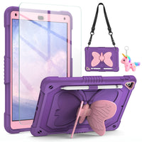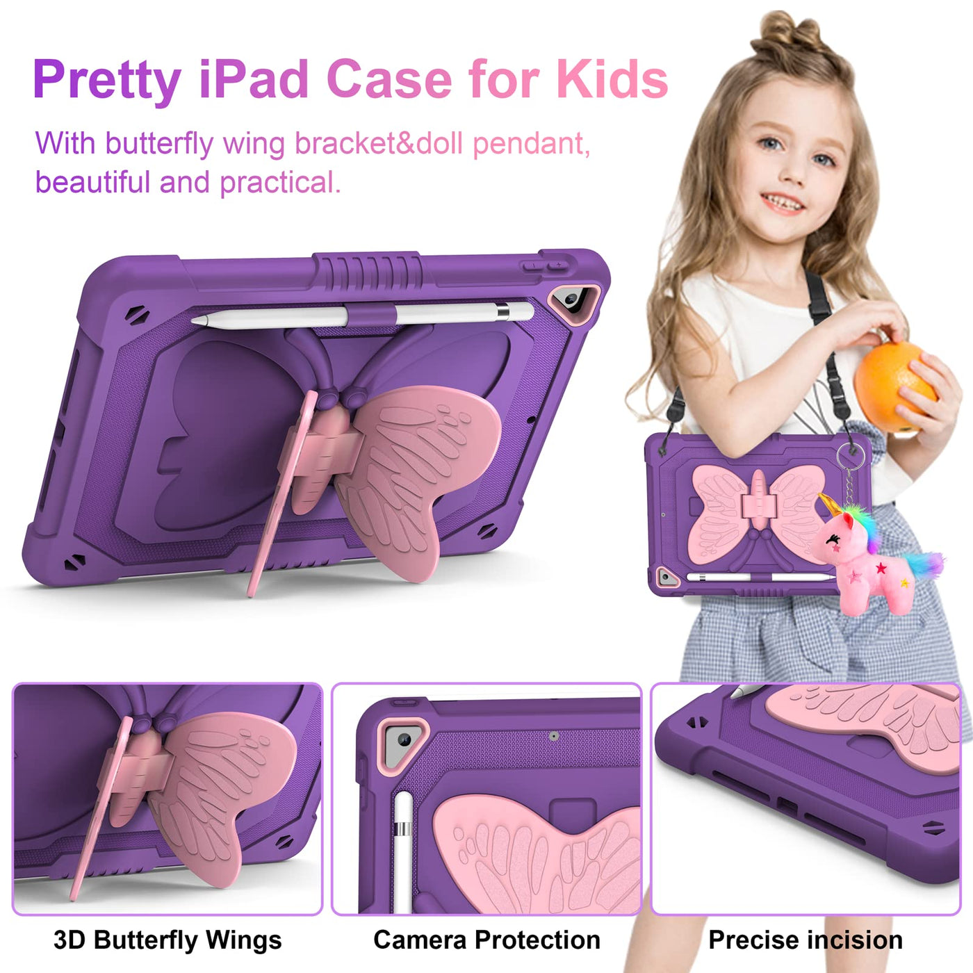Vofuoe Colorful Heavy Duty Butterfly Wings Stand Series Tablet Case With Screen Protector Shoulder Strap Cute Dolls Key Chain For Ipad 6Th/5Th Generation (2018/2017), For Ipad Pro 9.7 Inch 2016/ For Ipad Air 2Th Generation 9.7 Inch Color:Purple & Pink Butterfly Wings Material:Premium Soft Silicone Rubber And Hybrid Hard Pc And Front Hard Pc Bumper 2 In 1 Design. Product Features: Vivid And Colorful Butterfly Design Makes Your Tablet Unique And Free Your Hands. Built-In Cute Butterfly Kickstand Is Well Supported, Can Be Folded, Won'T Take Up Space. For Ipad 6Th Generation Case With Durable Tempered Glass Screen Protector Prevents Your Device From Being Scratched By Hard Objects And Effectively Protects The Screen. Only 0.33Mm Thickness Remains Original Response Sensitivity Of Your Tablet, Use High Transparency Tempered Glass To Restore The Color Of The Screen Bring You Natural Viewing Experience. For Ipad 9.7 Case With Adjustable Shoulder Convenient For Carrying And Hanging Your Ipad Everywhere. Perfect For School, Travel, Shopping, Etc. For Ipad 5Th Generation Case Also Comes With A Cute Doll Charm To Make Your Tablet More Adorable & Unique. For Ipad 6Th Generation Cases Built-In Pencil Holder Allows You To Store And Carry Your Pencil Easily. Textured Rubber Surface Protect For Ipad 9.7 Case From Slip, Scratches And Fingerprint. Openings For Power, Earbuds, Camera Etc Are All Precise Positioned Without Obstruction. The Best Christmas, New Year, Birthday Gifts For Kids, Girls, Friends, And Family.