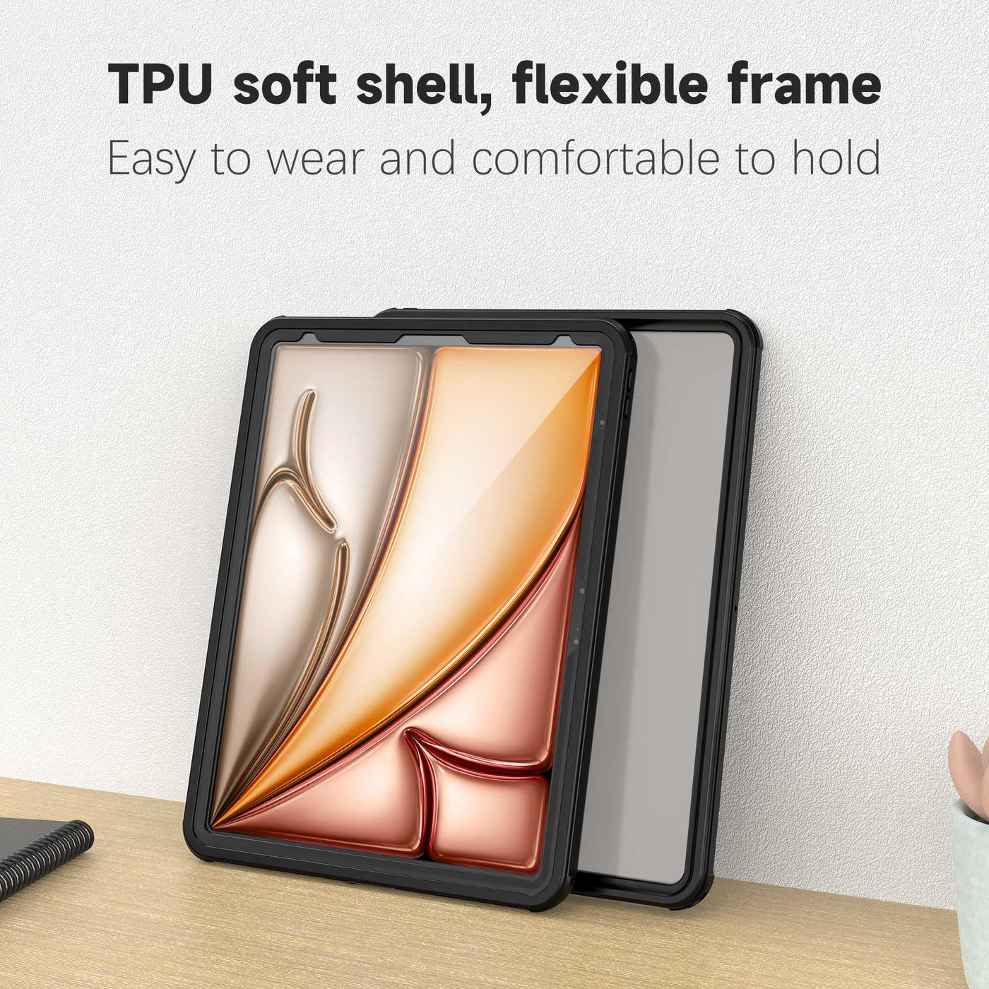 Why Choose Our Waterproof Ipad Air 13 Inch Clear Case: ---1.Its An Ip68 Certified Full Sealed Waterproof Case For Ipad Air 13 Inch, If Diving To 2 Meters Underwater, The Ipad Air 13 Inch Waterproof Case Can Stand Up To 1 Hour; ---2.Passed 6.6 Ft/2 M Height Drop Test For 1000 Times, Provide 360 Degree Full-Body Protection For Your Ipad Air 13 Inch ; ---3.The Full Protection Ipad Air 13 Inch Rugged Bumper Case Has A Front Built-In Screen, Can Protect Your Original Screen From Being Scratching,
