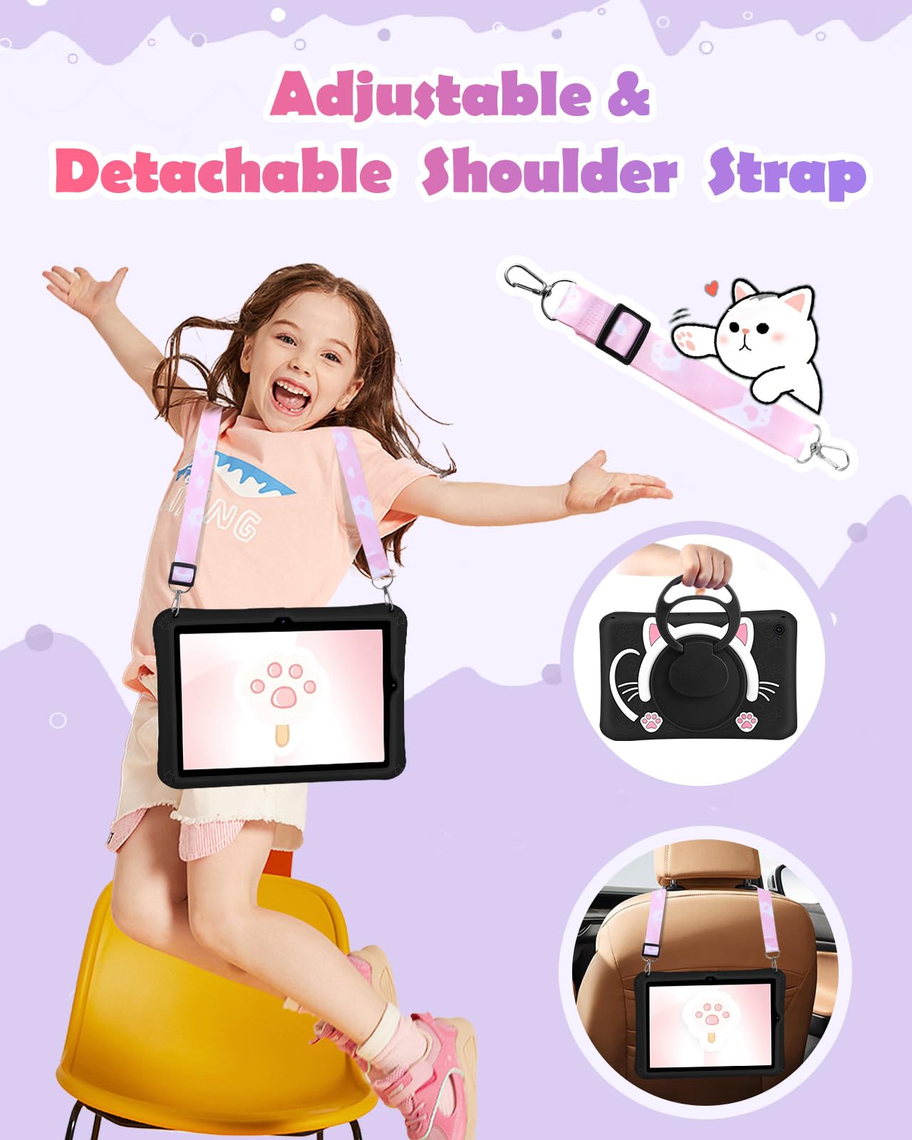 Wazzasoft For Samsung Galaxy Tab A9 Plus Case 11 Girls Cute Black Cat Cover Kawaii Girly 3D Cartoon Women Kitten With Rotatin