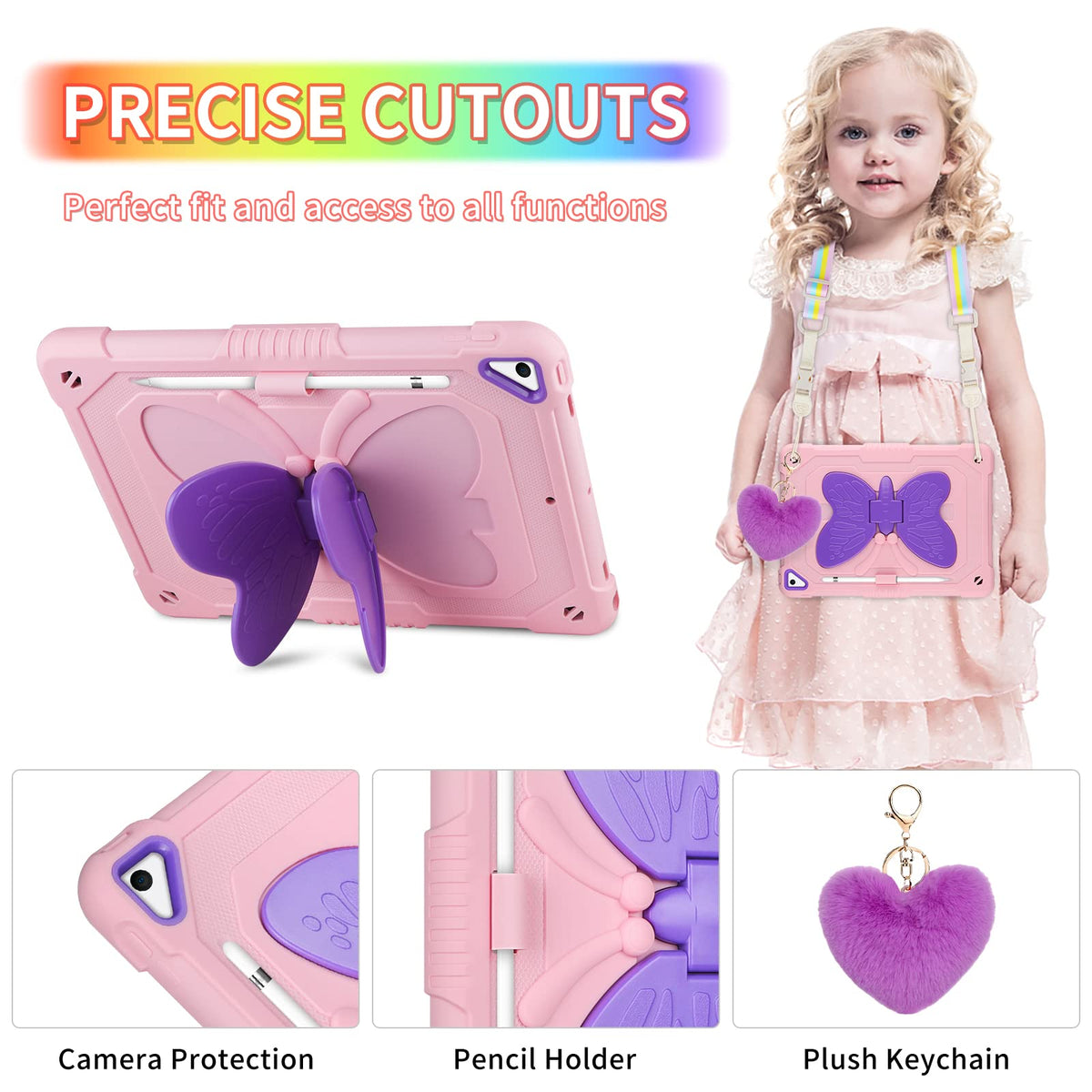 Wesadn Butterfly Tablet Case For Ipad 9Th 8Th 7Th Generation 10.2 Inch Model: Compatible With Apple Ipad 9Th Generation 2021 10.2 Inch. Compatible With Apple Ipad 8Th Generation 2020 10.2 Inch. Compatible With Apple Ipad 7Th Generation 2019 10.2 Inch. Color: Pink Purple Feature: 1.Colorful Pattern And Butterfly Kickstand Is Personalized And Unique For Eyes Catching, Comes With A Heart Plush Keychain, Very Suitable As A Girls Boys Kids'S Holiday Present. 2.This For Ipad 9Th Generation Case Comes With A Screen Protector Made Of Hardness Tempered Glass, Protects The Screen From Bumps And Scratches. 3.Dual Layer Drop Proof Design Is Rugged Provides A Strong Protection For Your Tablet. 4.Built-In Pencil Holder Is Convenient To Put The Pencil With The Tablet Together Without Fear Of Losing The Pencil. 5.Built-In Sturdy Butterfly Kickstand Is Useful Which Can Be Used As Horizontal Stand, More Convenient To Read, Type, Browse Website. 6.Precise Cutout, Easy And Quick Installation And Removal, No Need To Remove This Case During Charging. Package Content: Butterfly Heavy Duty Case For Ipad 9Th 8Th 7Th Generation 10.2 Inch Screen Protector Shoulder Strap Heart Plush Keychain