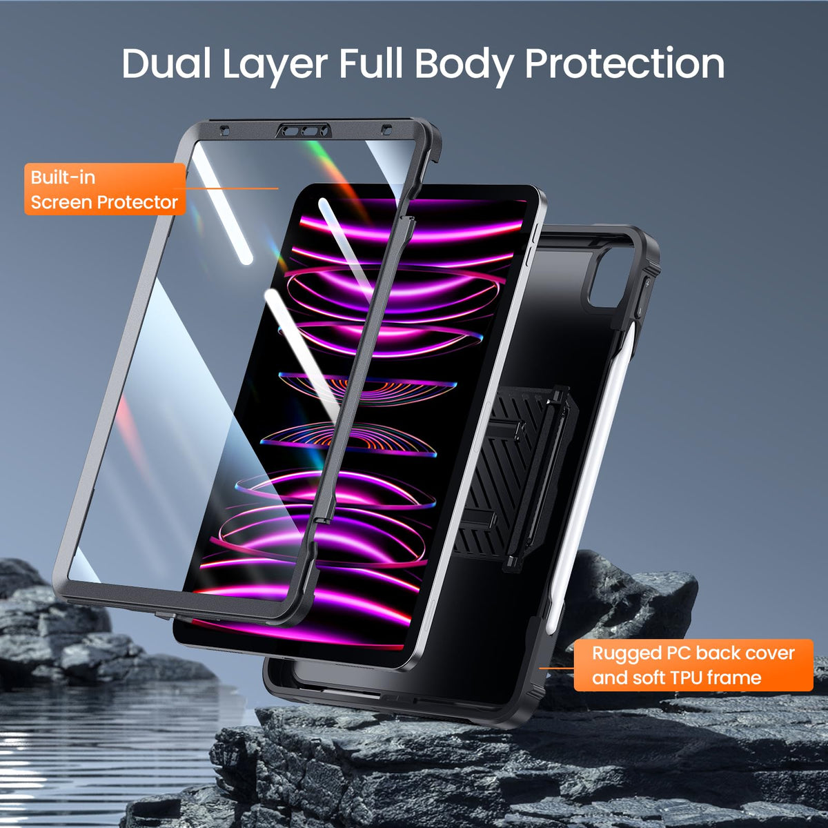 Ztotopcases For Ipad Pro 12.9 Case 6Th/5Th/4Th Generation 2022/2021/2020 Released, Rugged Cover With Built-In [Pencil Holder + Screen Protector] Designed For Ipad Pro 12.9 Inch 6Th/5Th/4Th Gen, Black