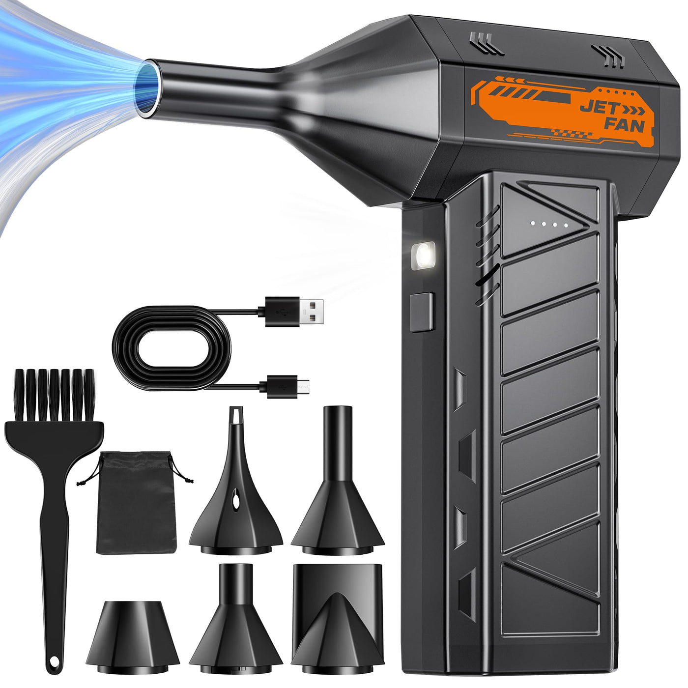 AUDEETO Compressed Air Duster - Cordless Mini Electric Air Duster with Led Light, 3 Adjustable Speeds & 5 Nozzles Storage Bag- P