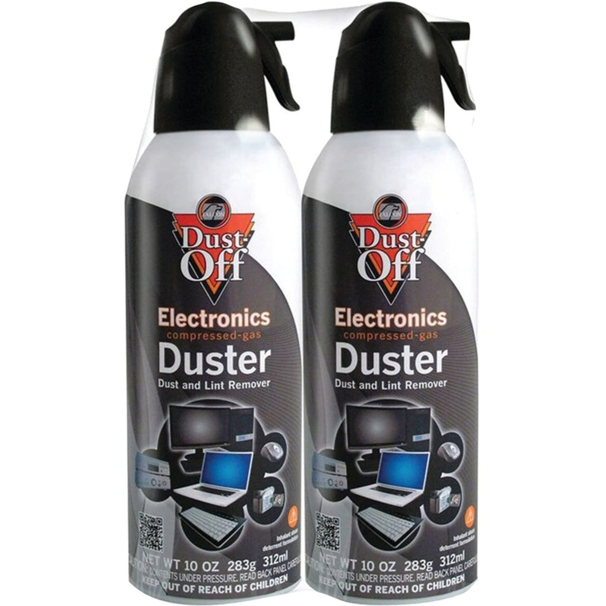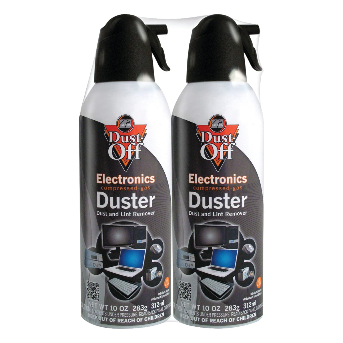 Q: What size is each can of the Dust-Off Compressed Gas Duster?A: Each can of the Dust-Off Compressed Gas Duster contains 10 oz of compressed gas, and this product comes in a convenient pack of 2, ensuring you have ample cleaning power for your electronic devices and household items.
