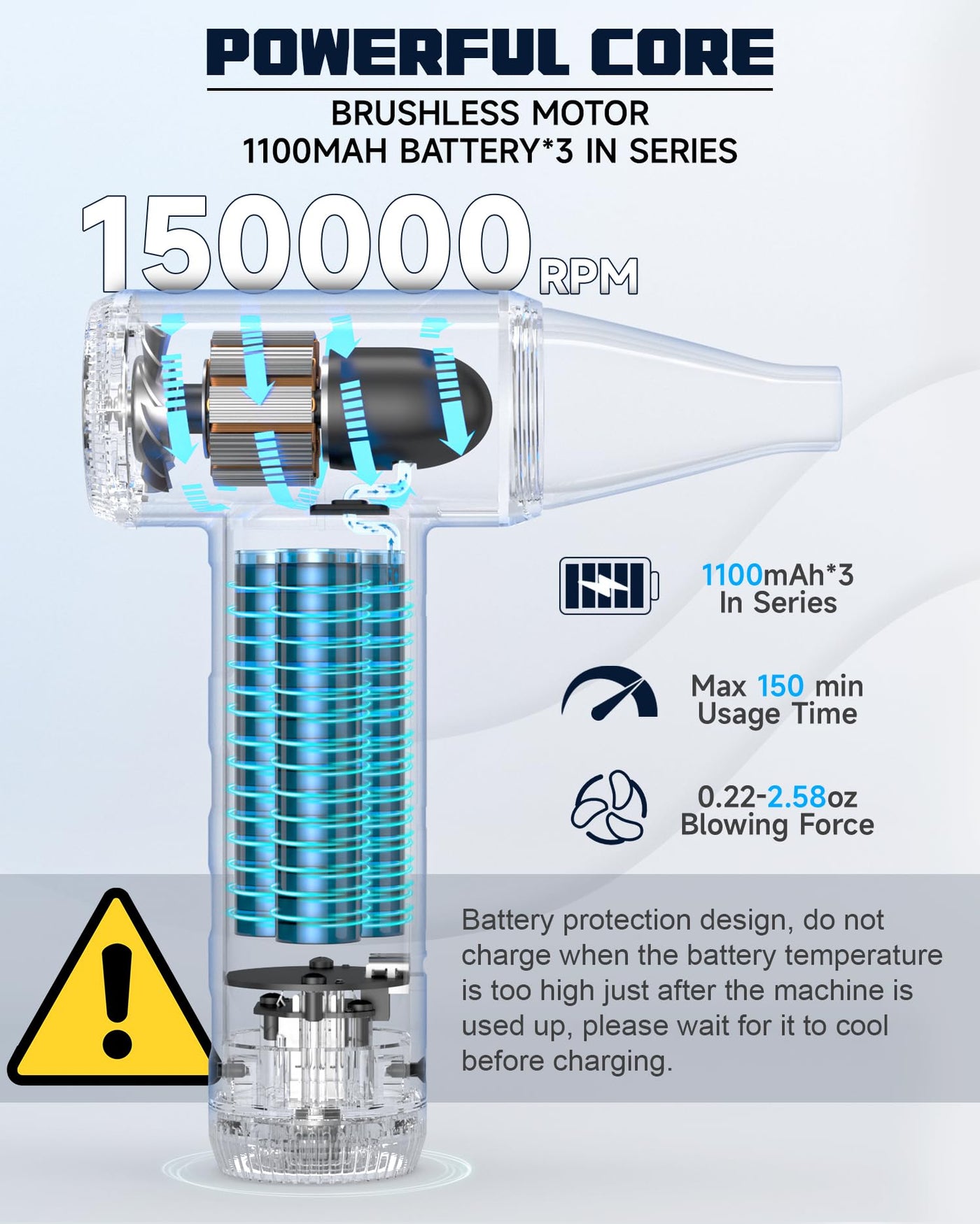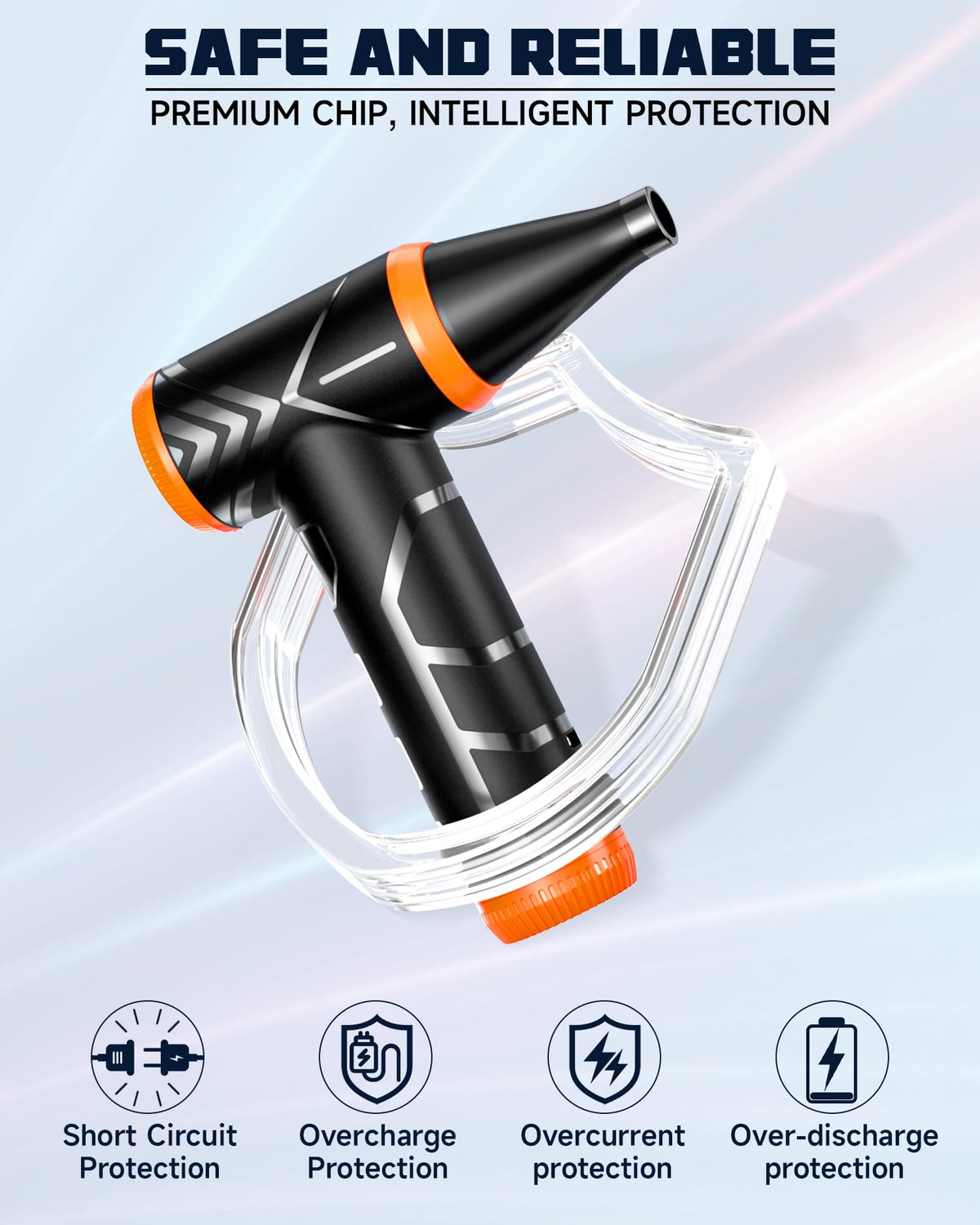 To Use A Compressed Air Duster Cleaner, Simply Turn It On And Direct The Airflow At The Area/Item You Want To Clean/Inflate. You Can Adjust The Airflow Intensity By Turning The Stepless Knob On The Bottom. This Electric Air Duster Is Equipped With A Large-Capacity Battery That Can Last For 13-150 Minutes After Charging. Whether You Are Cleaning Keyboards, Computers, Inflating, Doing Other Dust Cleaning, Or Using It As Grilling Tools / Grilling Accessories / Grill Tools During Barbecues, This Air Duster Is A Good Choice. We Stand Behind The Quality Of Our Products, If For Any Reason You Are Not Satisfied With Your Compressed Air Dust Collector, Please Contact Us And We Will Actively Make Improvements.