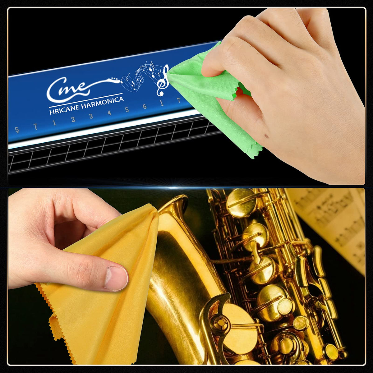 Hricane Guitar Cloths Microfiber (8-Pack 12''X12'' Cloths) Plush Polishing Cloths For Musical Instruments Premium Polishing & Cleaning Cloths For Guitar Violin Piano Clarinet Trumpet Sax Universal