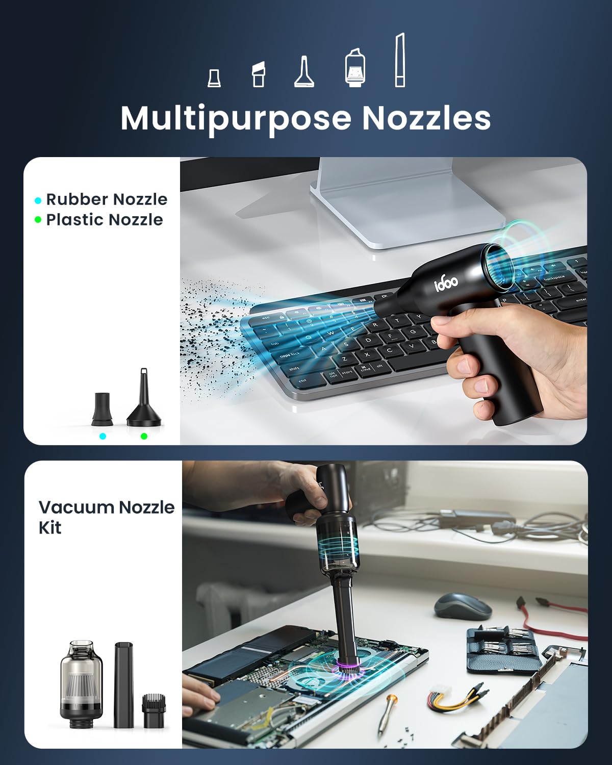 Idoo Compressed Air Duster Metal Electric Duster For Hair Barber, 3 Gear Mini Portable Jet Dry Air Blower, Cordless Vacuum Cle