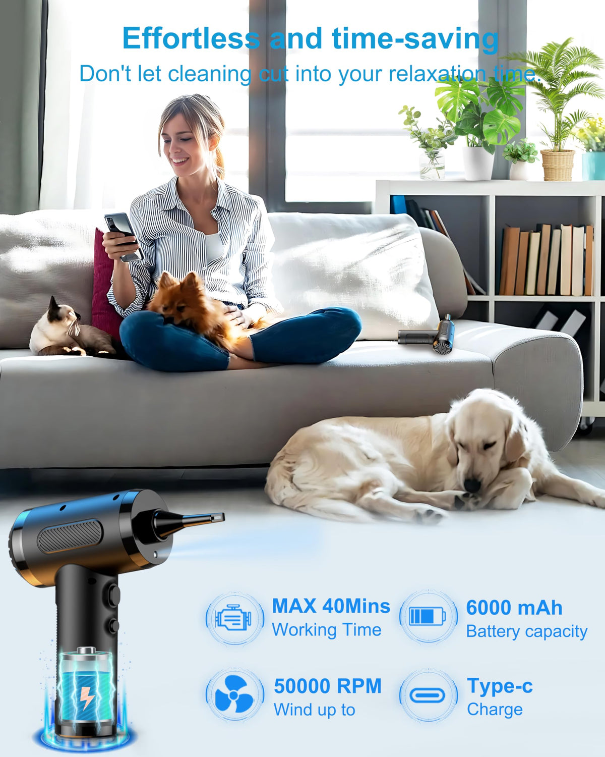 The Lihan Compressed Air Duster Is A Powerful Electric Air Blower That Is Rechargeable And Equipped With An Led Light. The Dust Blower Is Reusable And Portable, Making It Suitable For The Office For Cleaning Computers And Keyboards. Product Features: - Size: Small - Connectivity Technology: Cordless - Input Device Interface: Type- C - Compatible Devices: Keyboard, Computer, Pc, Mouse Pad, Dust, Car, Game, Home, Ps5, Desk, Camera Lens, Blinds, Souvenirs, Electric Shaver, Tv Screen, Lampshade, Vacuum Cleaner.