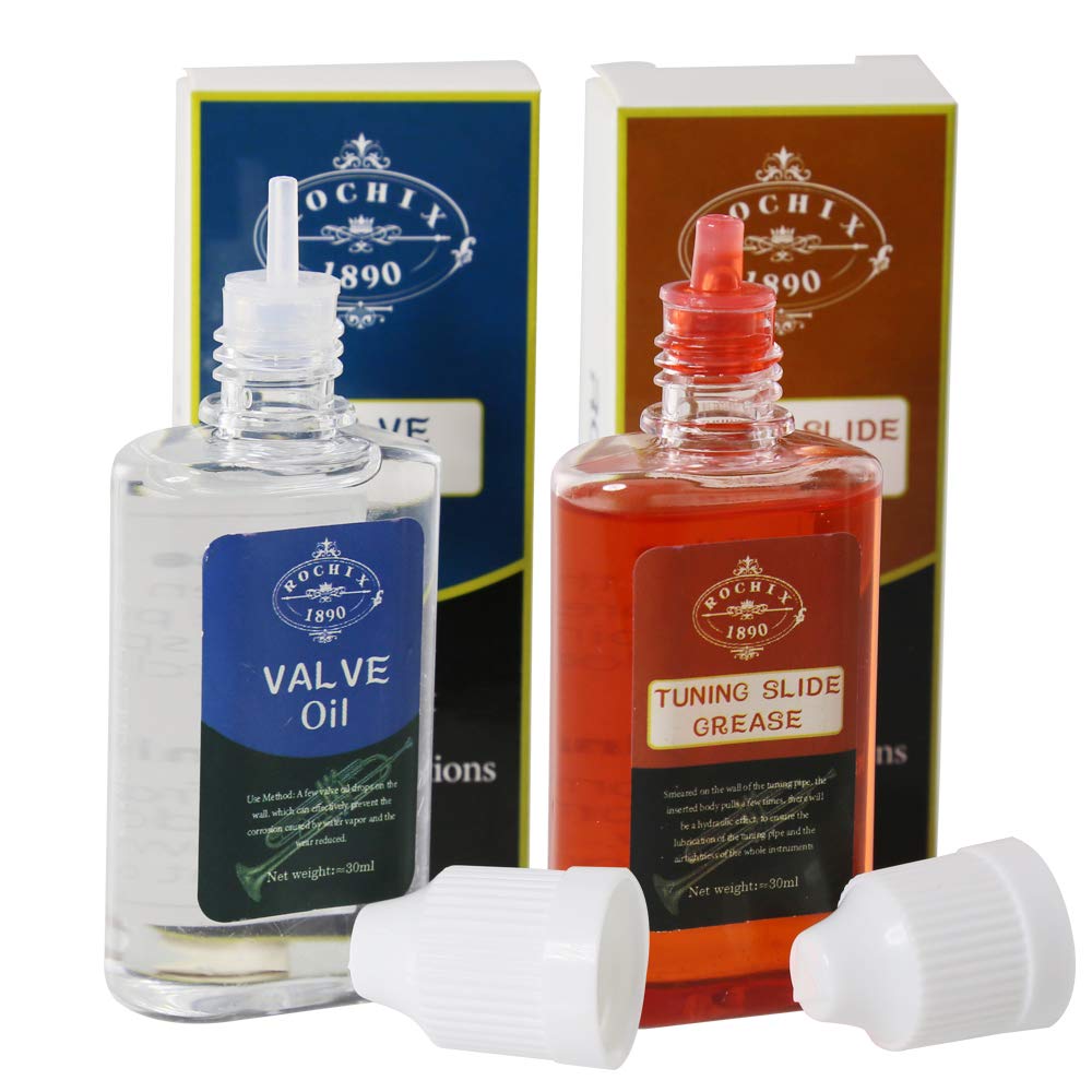 Product Name:Rochix Synthetic Valve Oil & Tuning Slide Grease For Trumpet,Trombone,French Horn,Tuba,Euphonium And Other Brass Instruments Brand:Rochix 1890 Specification:1 Pcs Valve Oil+1 Pcs Tuning Slide Grease,1.02 Fl.Oz/30Ml Scope Of Application:Trumpet/Trombone/French Horn/Tuba/Euphonium Master Carton:Standard Export Carton