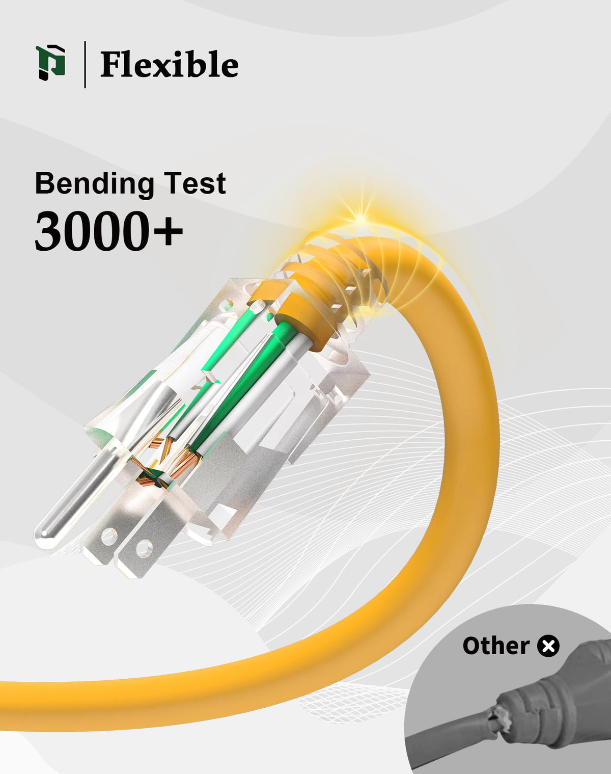 Plugtul Outdoor Extension Cord 15Ft With 3 Outlets, Heavy Duty 12 Gauge 3 Prong Power Cord Our Extension Cord Is Made With 12 Gauge Wire Diameters Which Can Handle More Amperage, And Therefore More Wattagemaximum Output Power Is 1875 Watts(15 Amps, 125V) Durable & Flexible Waterproof Flexible Vinyl Jacket Provides Have Better Bending Resistance And Prevent Them From Breaking During Long-Term Bending And Pullingtemperature Range: -40Af To +140Af Einforced Blades Protect Prongs From Bending Or Breakingthe Yellow Cable Jacket Highly Visible, Easier To Be Found And Prevents Accidentsetl Listed All Purpose Extension Cord For Indoor And Outdoor Useideal For Use With Heavy Duty Power Tools, Appliances And Any Other Device That Requires Extended Use 1* 12 Guage Extension Cord 15 Feet If You Have Any Problem With Our Extension Cord When You Received Or After Using, Please Contact Us By Email, We Will Reply To You In 24Hours And Will Do Our Best To Help You Solve The Problem