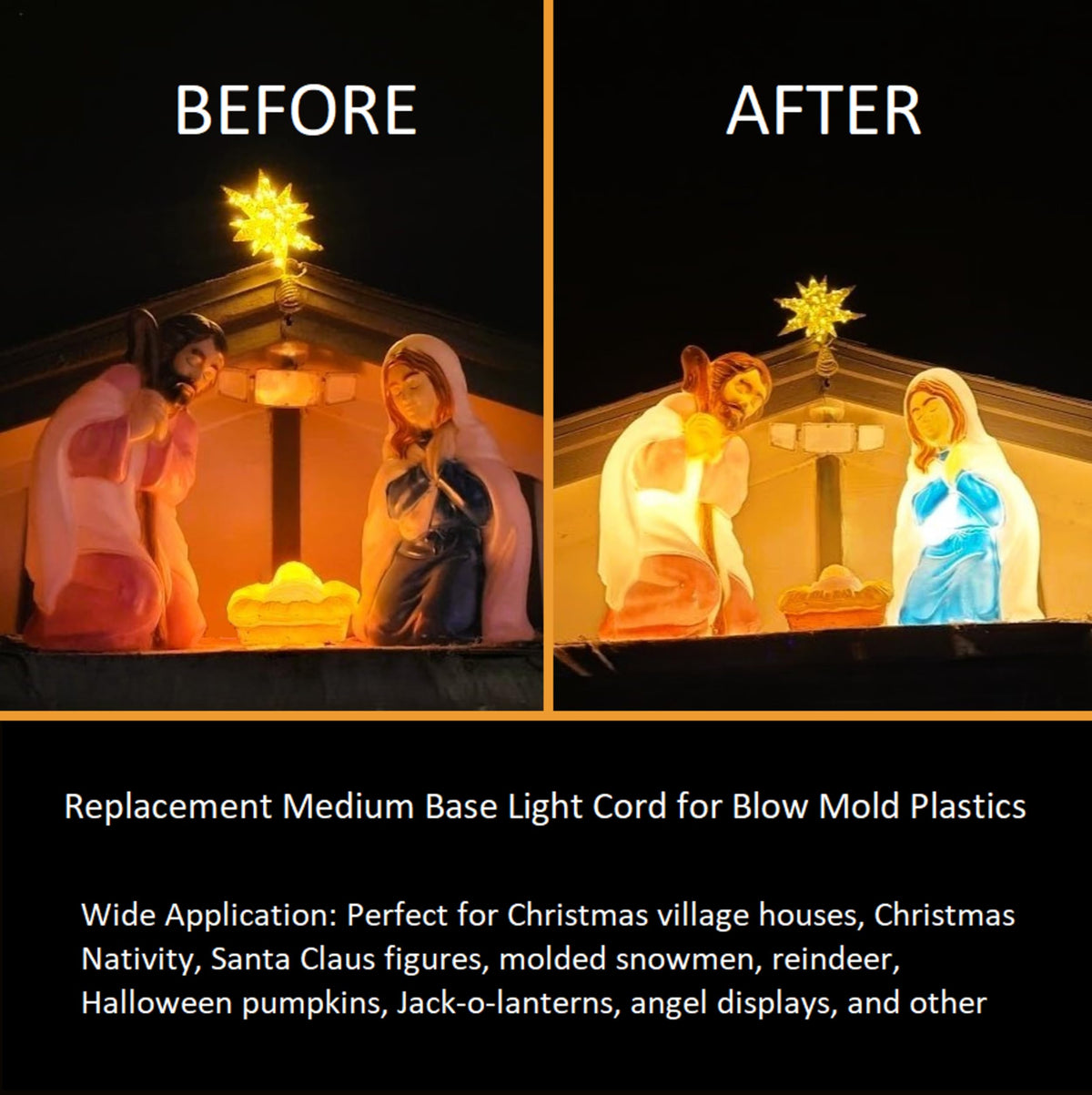 > This Replacement Blow For Christmas And Halloween Mold Light Cord And Socket For Assorted Large Blow Molds Features A New Tapered Design On The Socket >Product Features: Includes A Socket, Cord, Screw, And Plate. Assembly Required; Instructions Included. Requires Type A Lamp. Incandescent/Led/Cfl Compatible. Ul Listed For Indoor And Outdoor Use. 120V/60 Watts/60Hz/0.5A. 90 Days Maximum Installation And Use>Dimensions: 2.38 H X 3.52 Dia. Materials: Plastic/Metal Replacement Cord For General Foam Mb48 Blow Mold Products And Others Great For Christmas Village Houses, Santa Claus, Molded Christmas Snowmen Or Reindeer, Pumpkins, Jack-O-Lantern, Halloween Decorations, Blow Molds, Angel Displays, Craft Projects, Etc