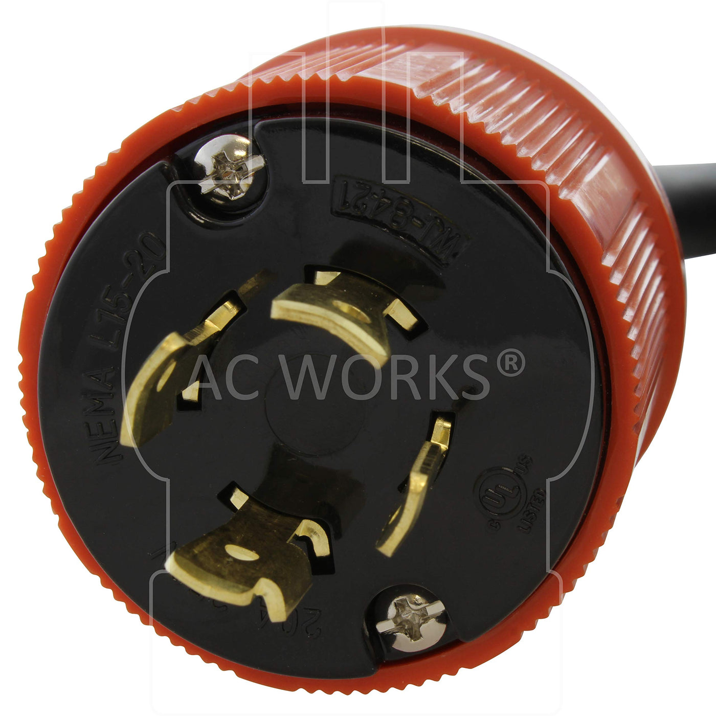 This Ac Works Brand Extension Cord [L1520Pr] Is A 20 Amp 3-Phase, 4-Prong Industrial High-Power Locking Extension Cord. The Cable Is An Soow 12/4, 20 Amp Copper With 600 Volt Rubber Jacket Allowing It To Stay Flexible In Extreme Temperatures. This Cord Is Popular For Use With Industrial And High-Power Equipment. Included With Your Purchase Is A 5-Year Limited Warranty. Note, De-Rated To 18 Amps When The Cable Is Longer Than 50 Ft. Nema L15-20 Extension Cord Industrial High-Power Locking Extension Cord Works With A 20 Amp L15-20 Outlet And Inlet 20 Amp, 250 Volt 3-Phase 5-Year Limited Warranty
