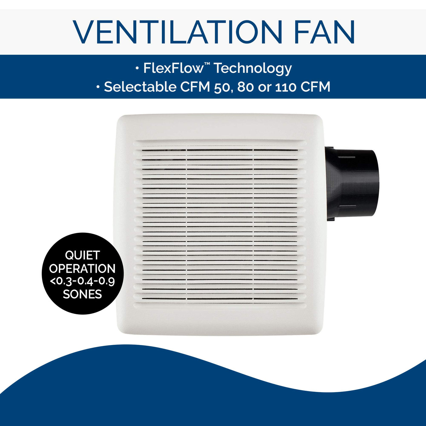 Broan Nutone Ae50110Dc Flex Dc Series Energy Star Certified Bathroom Ventilation Fan, Medium, White