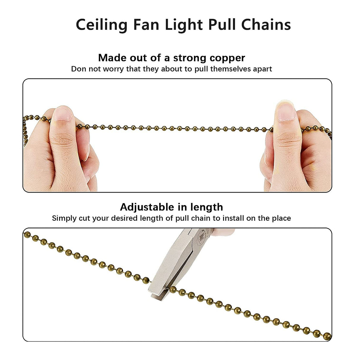 Why Choose Our Pendant For Your Ceiling Fan Light? - Beautify The Interior Environment For Your Home, Enrich The Color Of The Living Room Decoration, Create An Vivid Atmosphere - Be An Extender Of Your Ceiling Fan Light Or Ceiling Fan Switch - Feng Shui Function, Put Special Things In Special Places Will Bring Good Luck For You - Our Pendants Are Beautifully Designed And Have A Positive Impact On Peoples Physical And Mental Emotions - Different Pendants Symbolize Your Personality, Taste And Status - Choose Your Favorite Pendant Pattern Based On Your Personal Hobby Specification: Material: Copper Length Of Pull Chains: 12 Inch Diameter Of Each Bead: 3.0Mm What You Get: 2X 12Inch Fan Design Pull Chain Extension 2X 12Inch Light Bulb Design Pull Chain Extension Warranty: 12 Month Warranty And Get New Replacement If With Quality Problem.