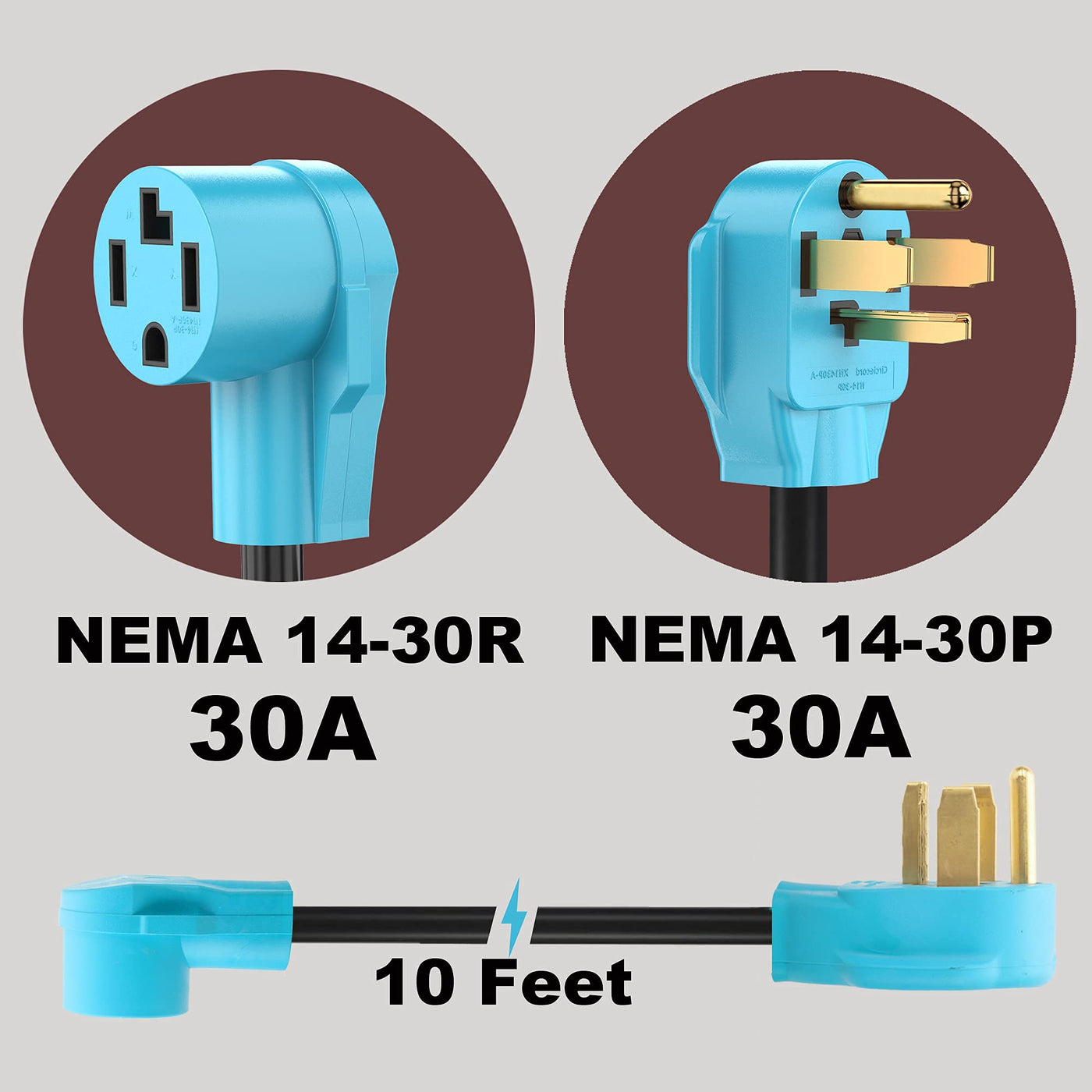 Circlecord 4 Prong 10 Feet Dryer/Ev Extension Cord, 30 Amp Nema 14 30P To 14 30R, Use For Electric Clothes Dryer Power Extension