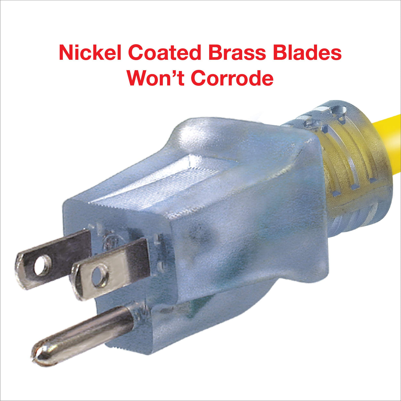Clear Power 3 Ft 12/3 Sjtw, 3 Outlet Extra Heavy Duty Outdoor Extension Cord Adapter, With Gfci,Yellow, Water & Weather Resistan