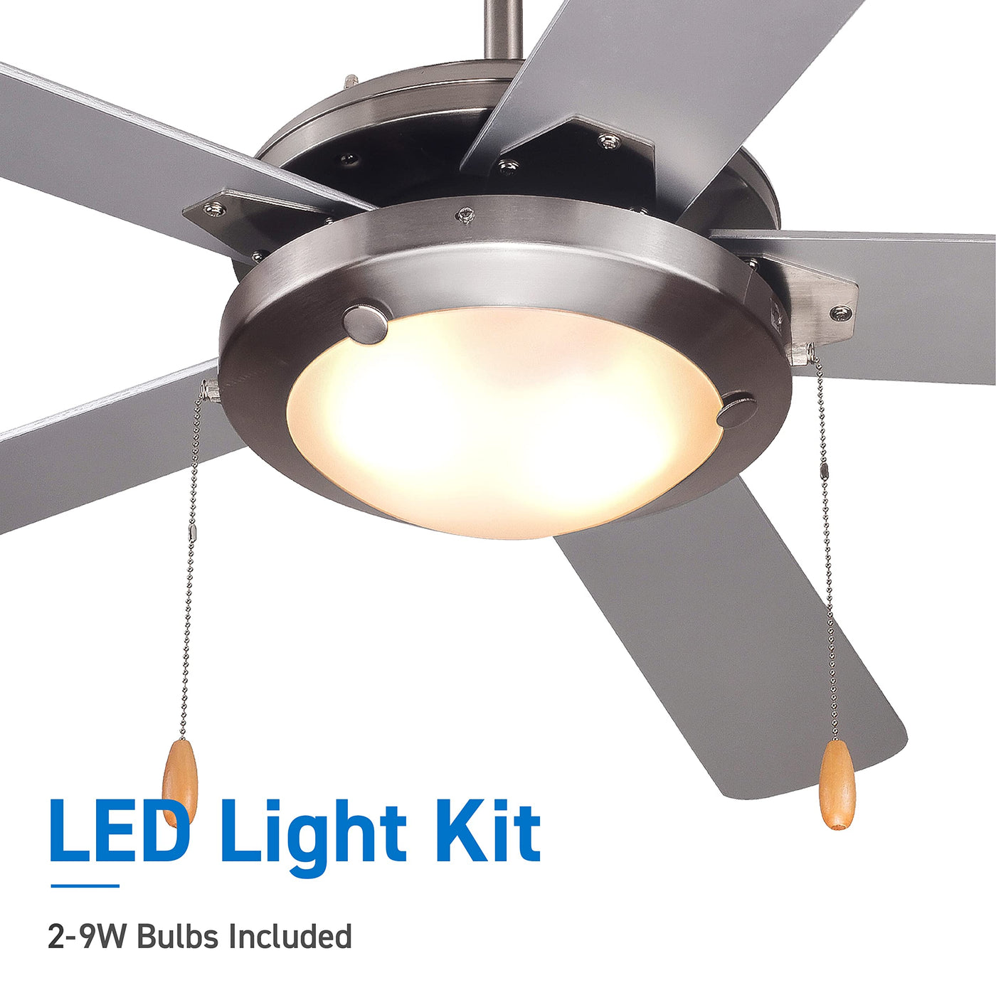 Transform Your Home With This Modern Commercial Cool Ceiling Fan With Lights. Made With 5 Blades 52 In Diameter, You Can Easily Cool A Larger-Sized Room Up To 350 Sq. Ft. In A Matter Of Minutes. With This Ceiling Fan You Can Also Pick Your Preferred Air Speed: High (4067 Cfm), Medium (2846 Cfm) And Low (1513 Cfm). Two 9-Watt Led Light Bulbs Included So You Can Better Illuminate Your Sprawling Living Room, Kitchen And Dining Room. Unit Also Features A Double Pull Chain. Our Blades On This Excellent Ceeling Fan With Light Are Also Mdf Reversible, Ensuring Air Flow In Both Directions For Optimal Cooling. Downrod (52 X 52 X 16.1 ) And Flush (52 X 52 X 10.1 ) Installation Allows You To Position Your New Fan (17.6 Lbs.) At In The Perfect Spot. Our Excellent Ceiling Fan With Lights Comes With Plywood Blades In Sleek And Stylish Silver.