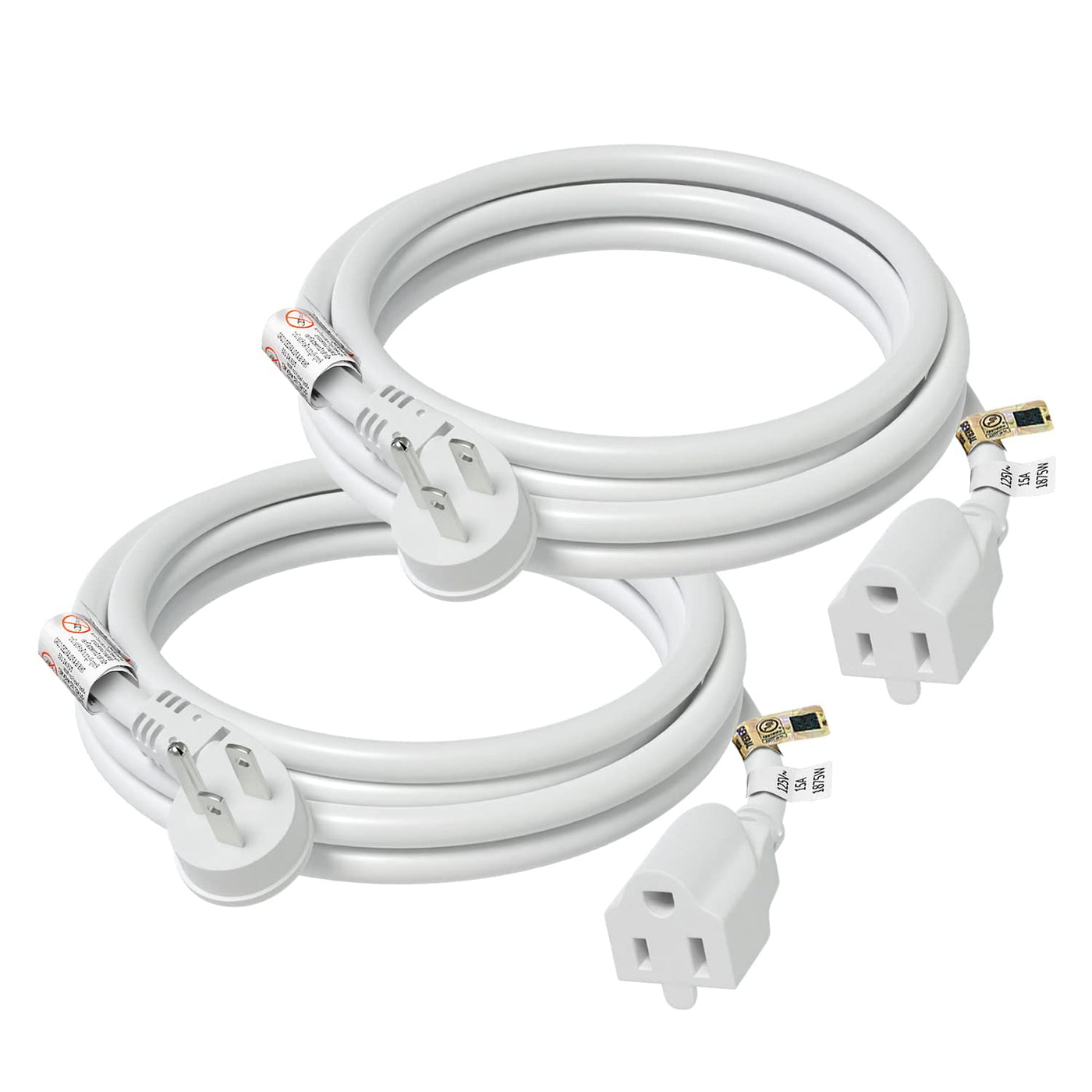 Firmerst 1875W 15A Flat Plug Extension Cord 6 Feet 14 Awg White Pack Of 2